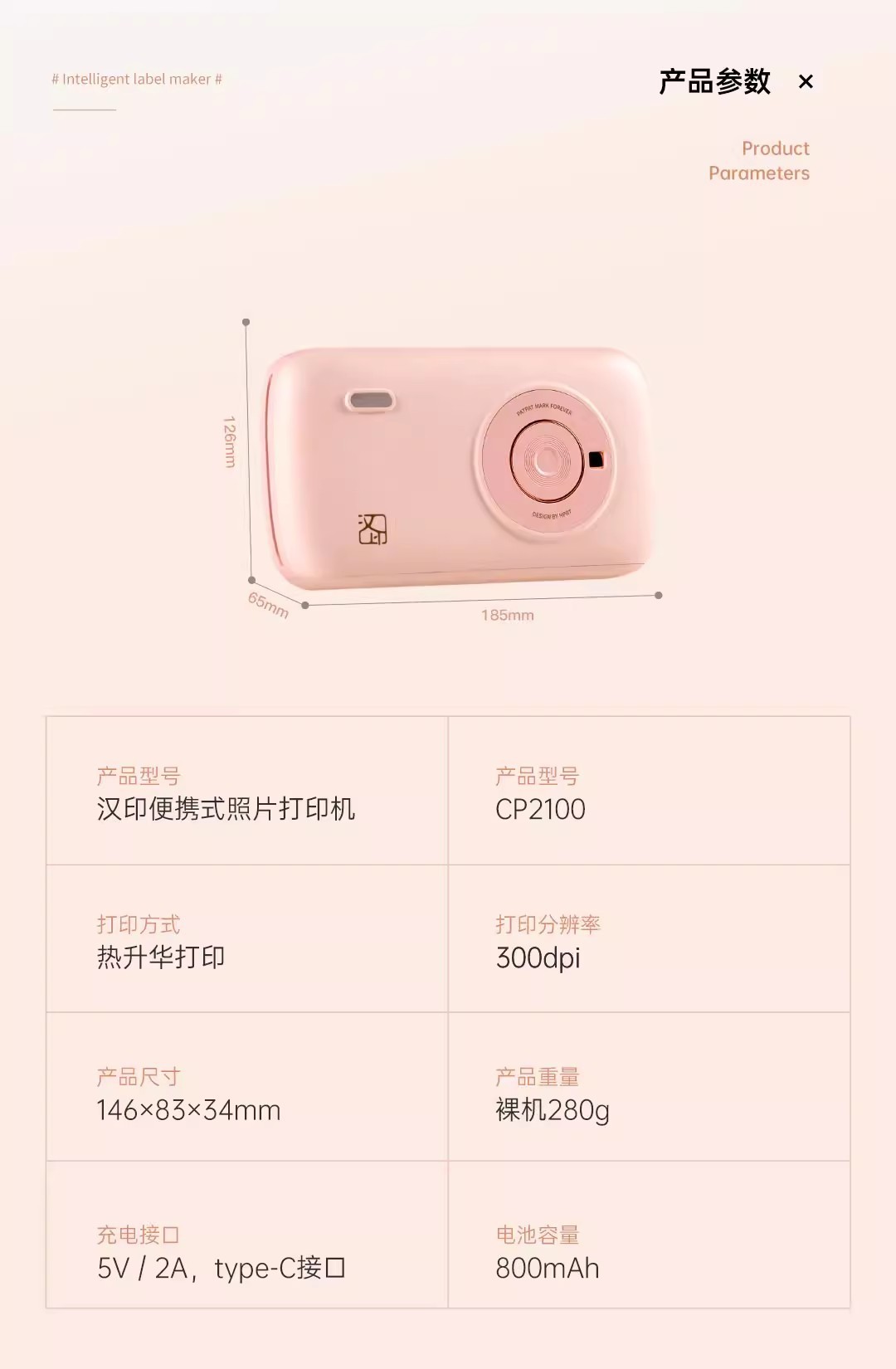 Мини-принтер Hanyin CP2100, портативный, термальная сублимация, трехдюймовый, цветной