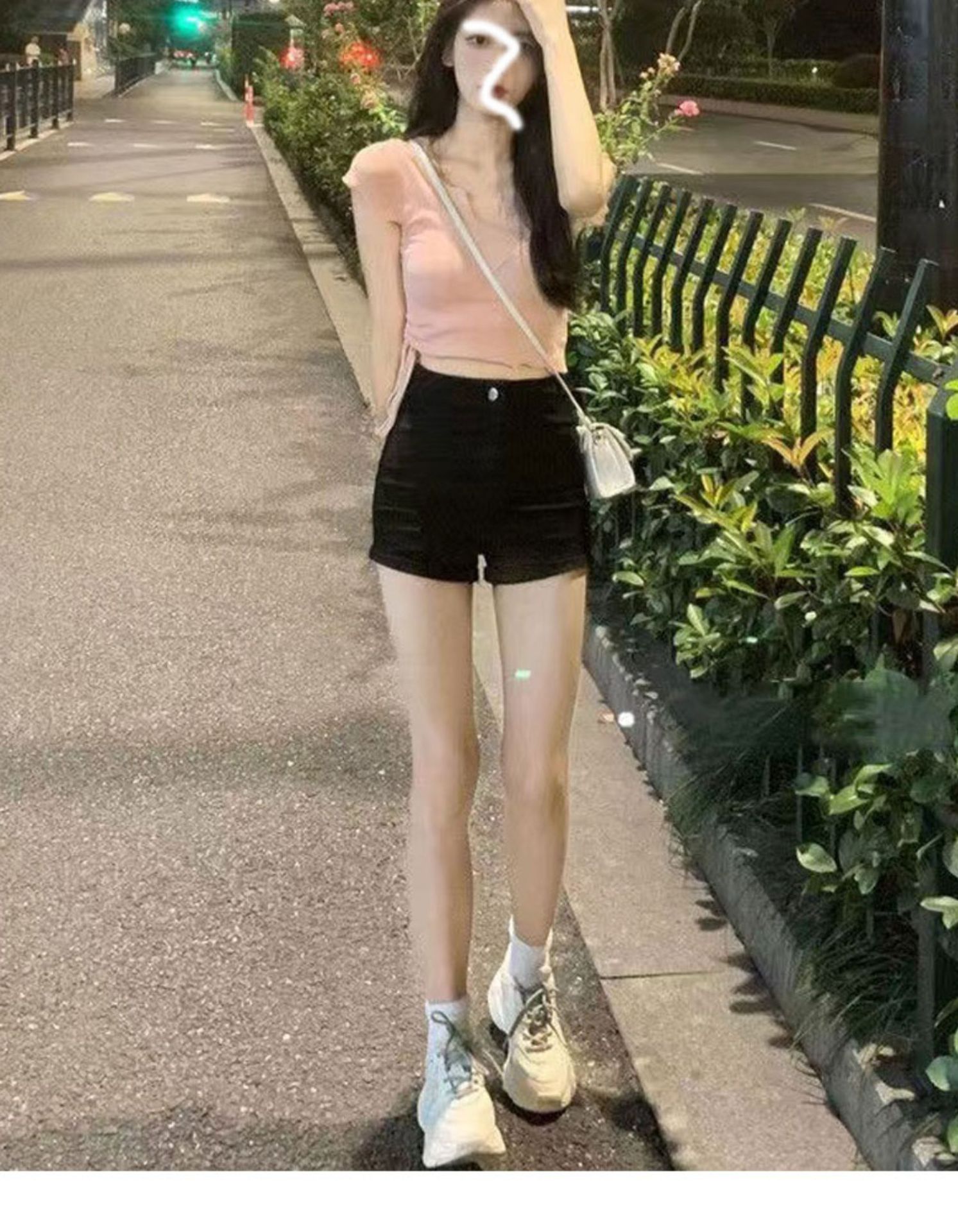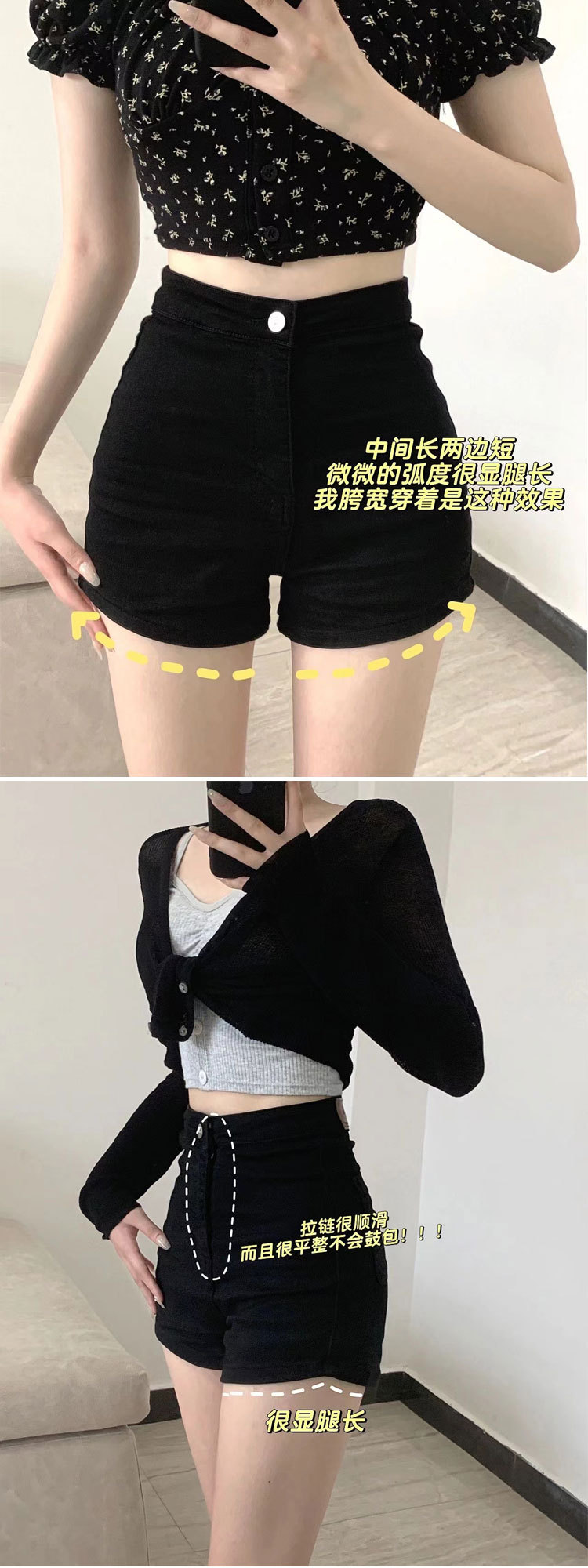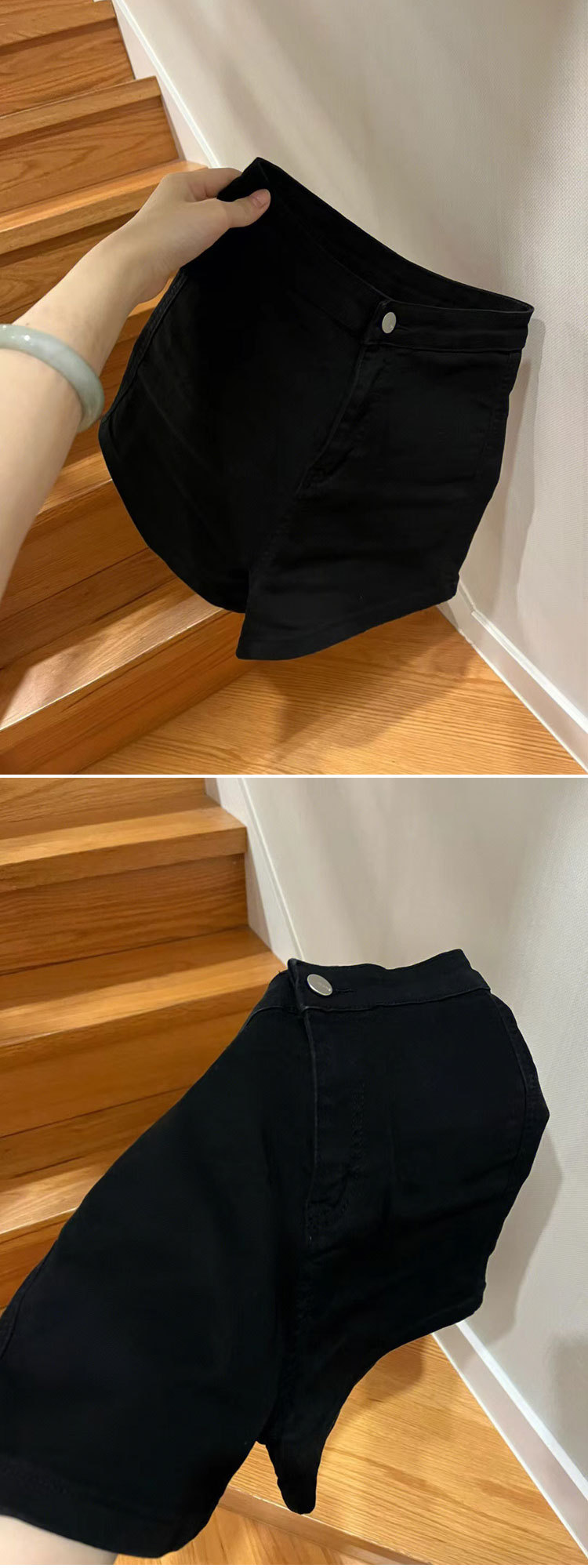 Черные джинсовые шорты с высокой талией, эластичные, летние, облегающие