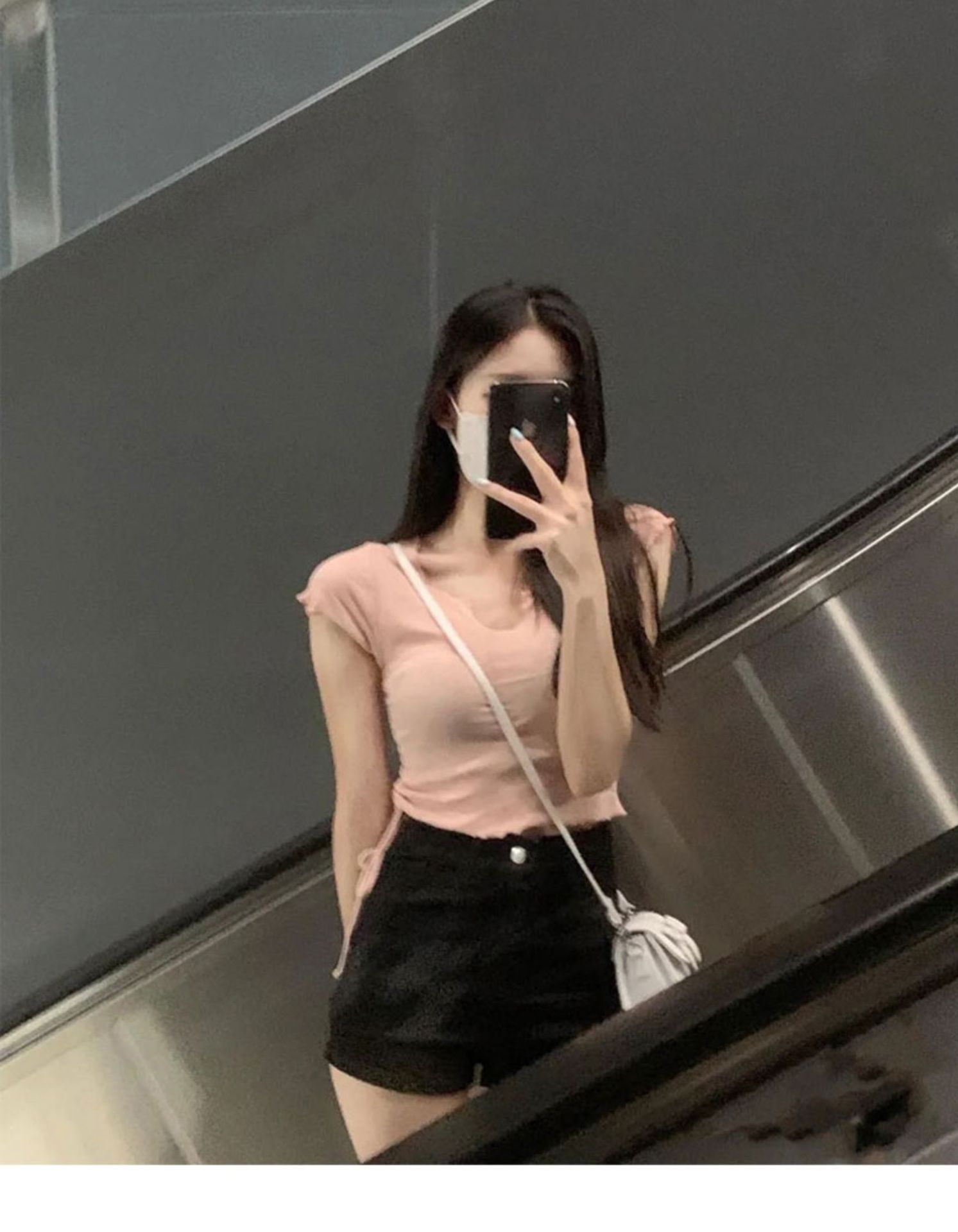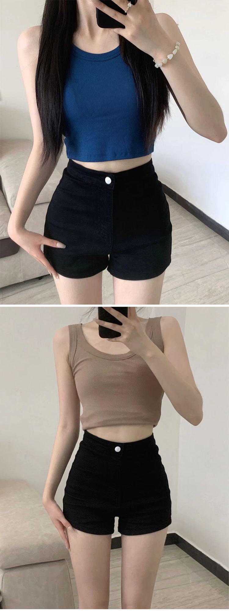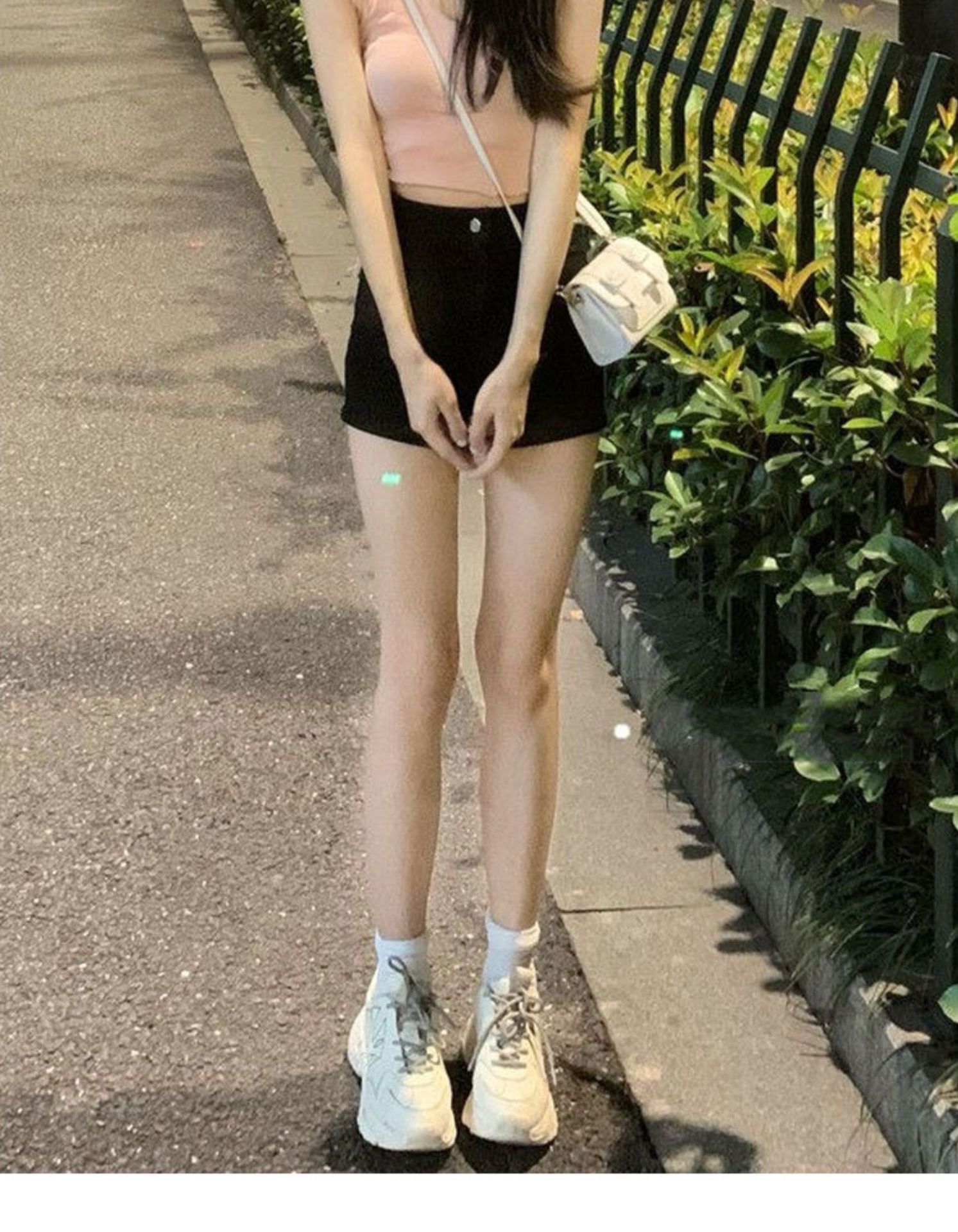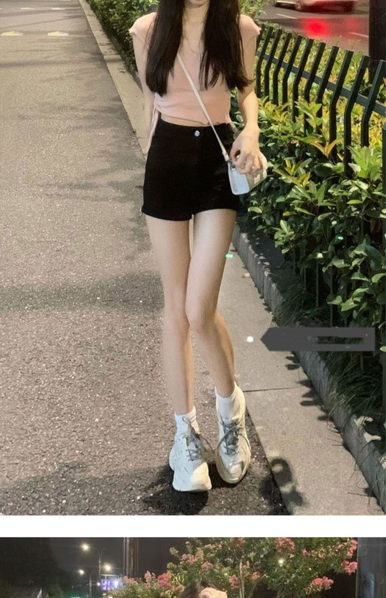 Черные джинсовые шорты с высокой талией, эластичные, летние, облегающие