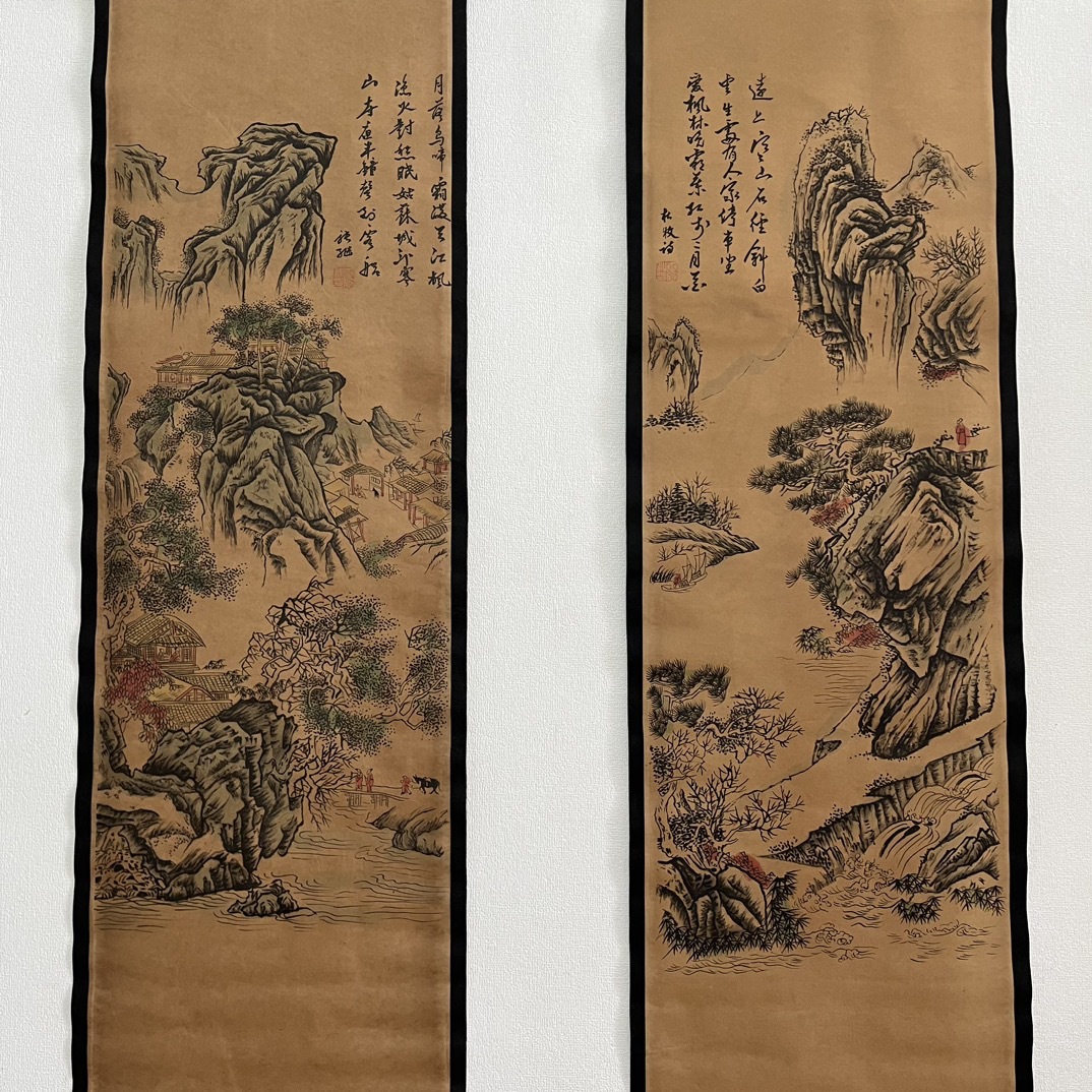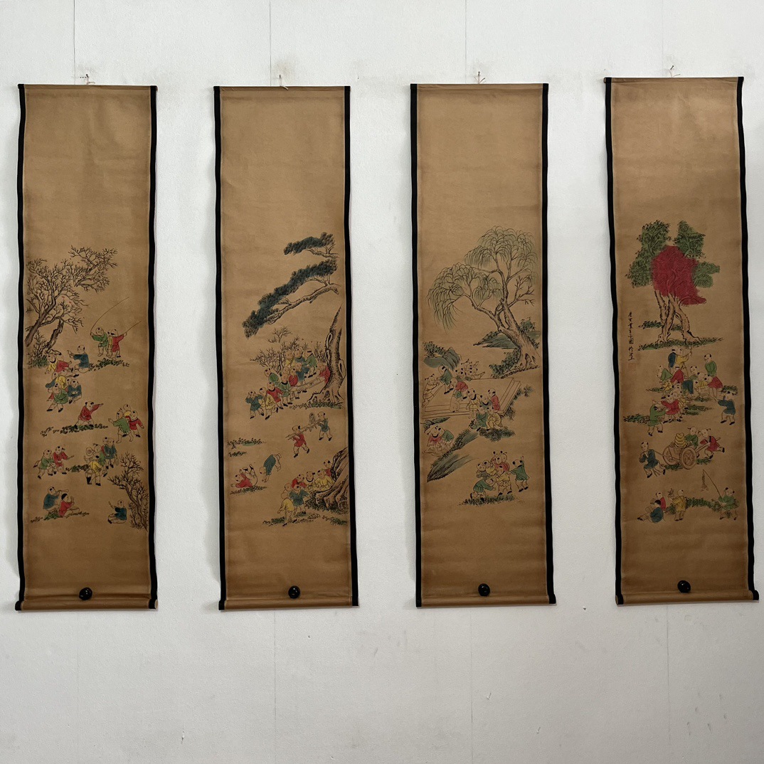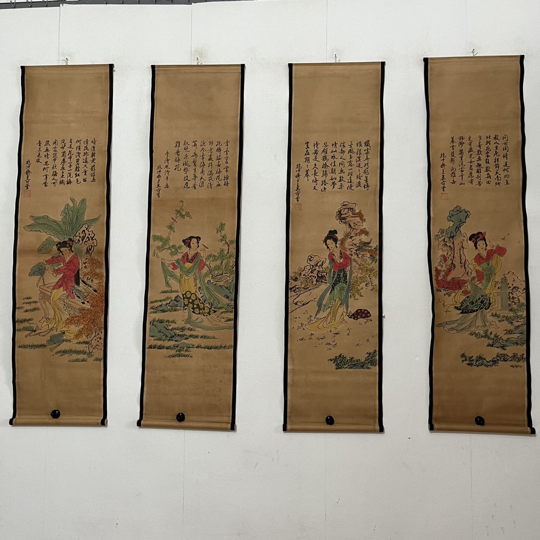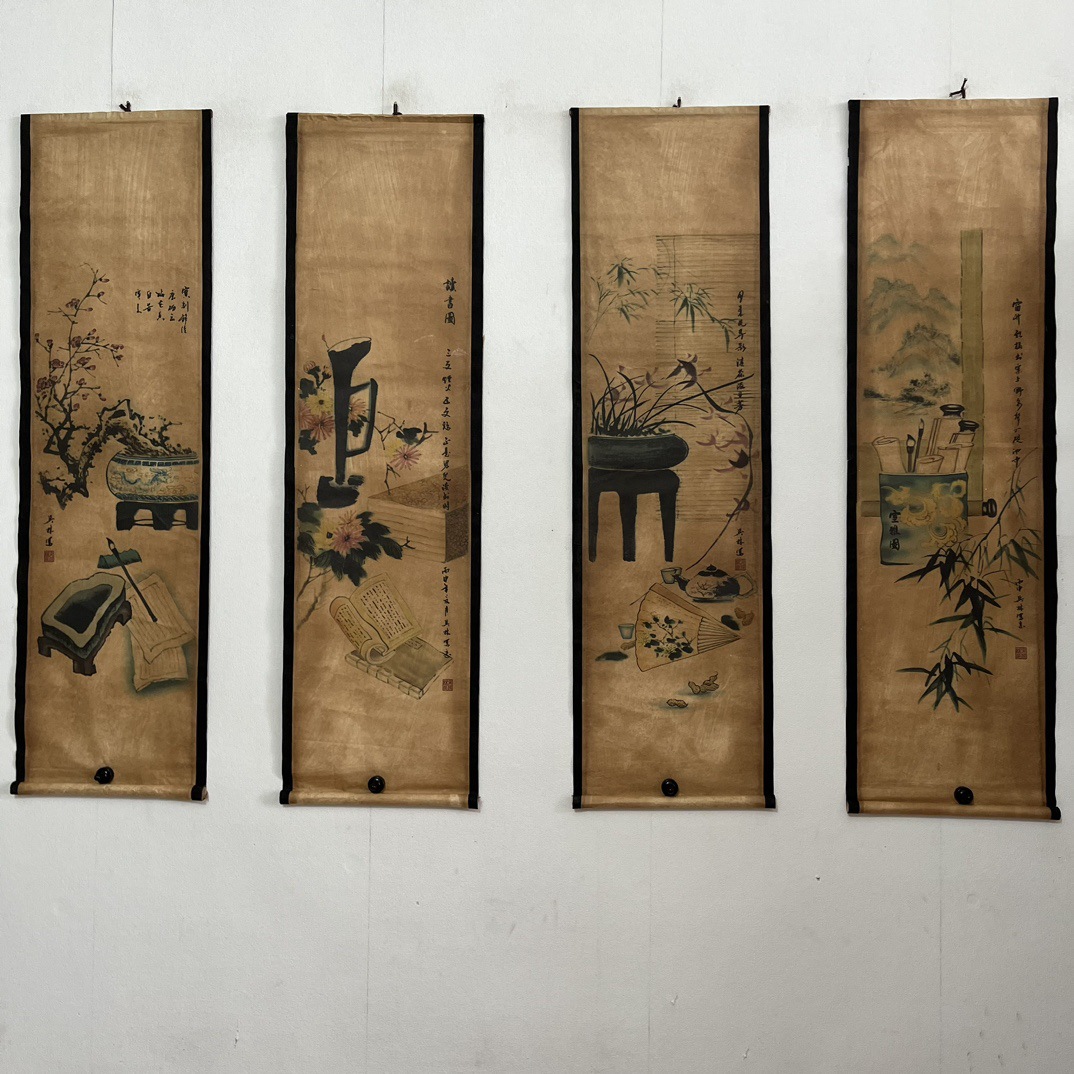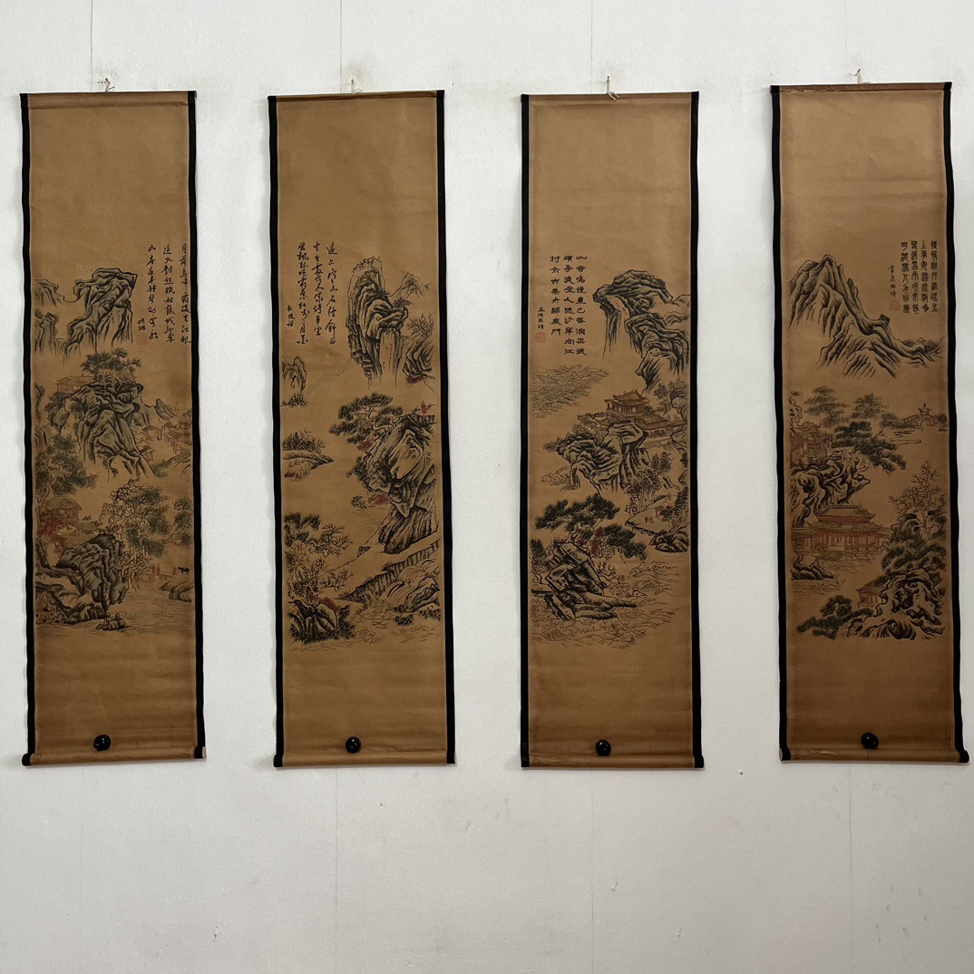 Антикварная живопись и каллиграфия, четыре экрана с пейзажами, коллекция