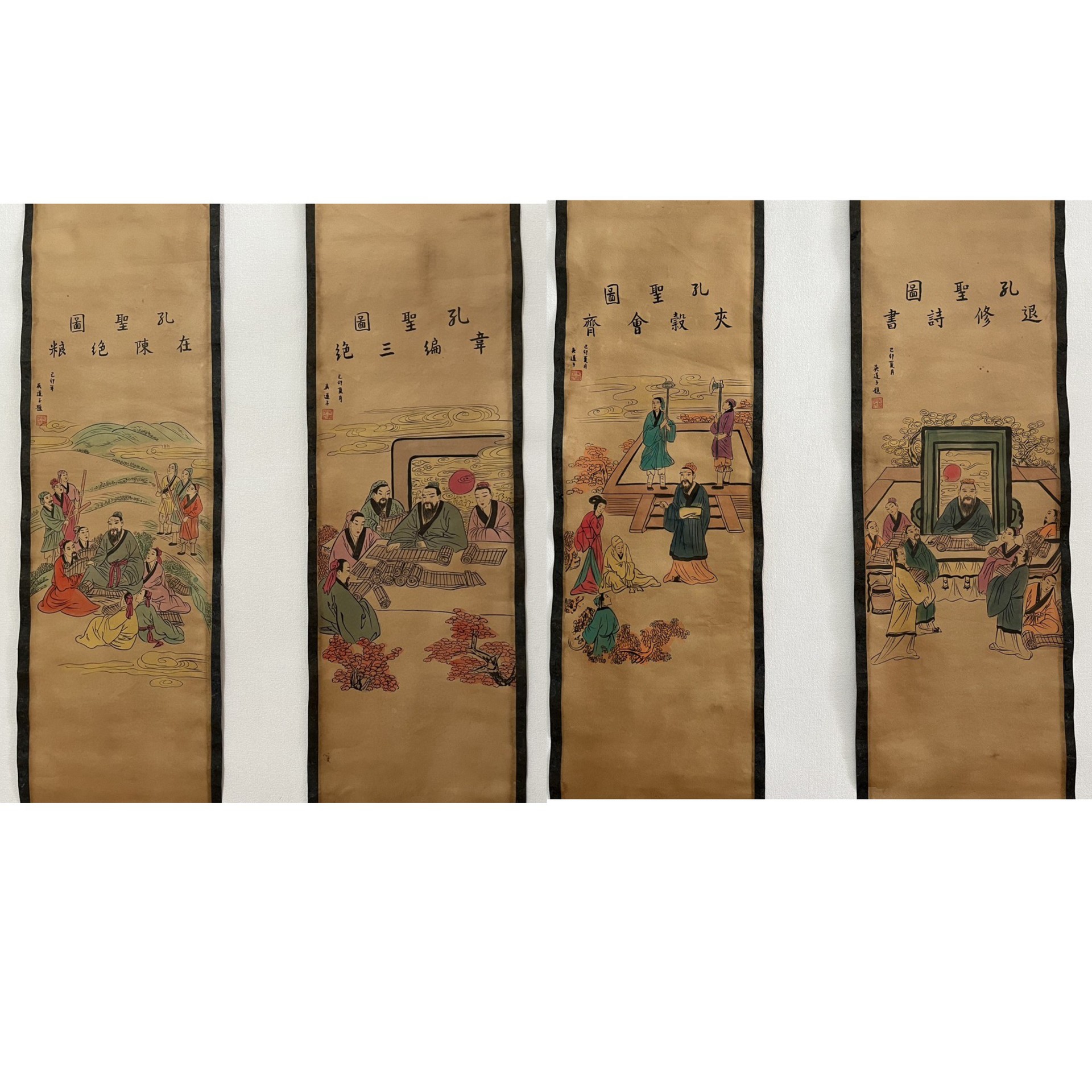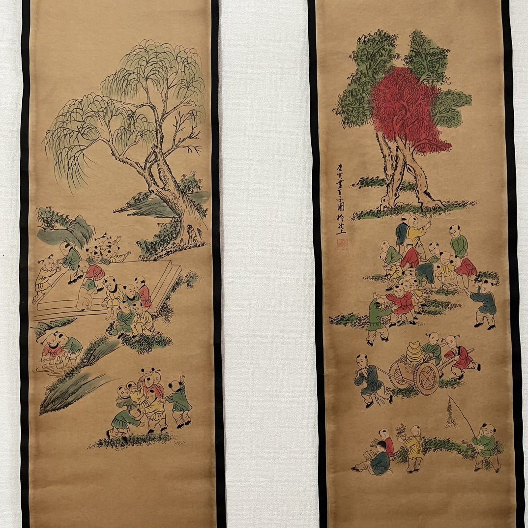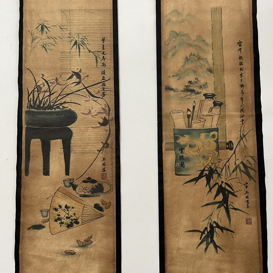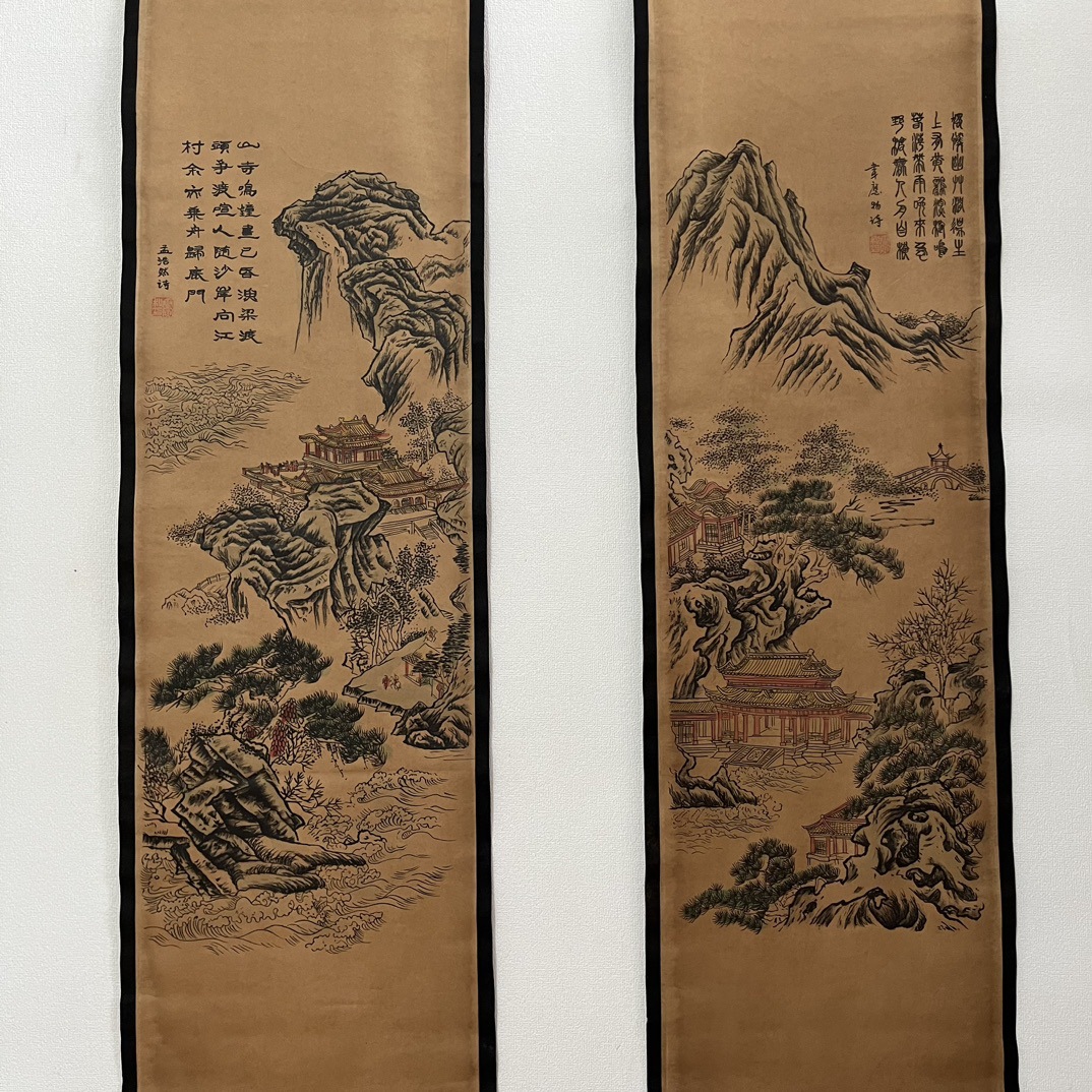 Антикварная живопись и каллиграфия, четыре экрана с пейзажами, коллекция