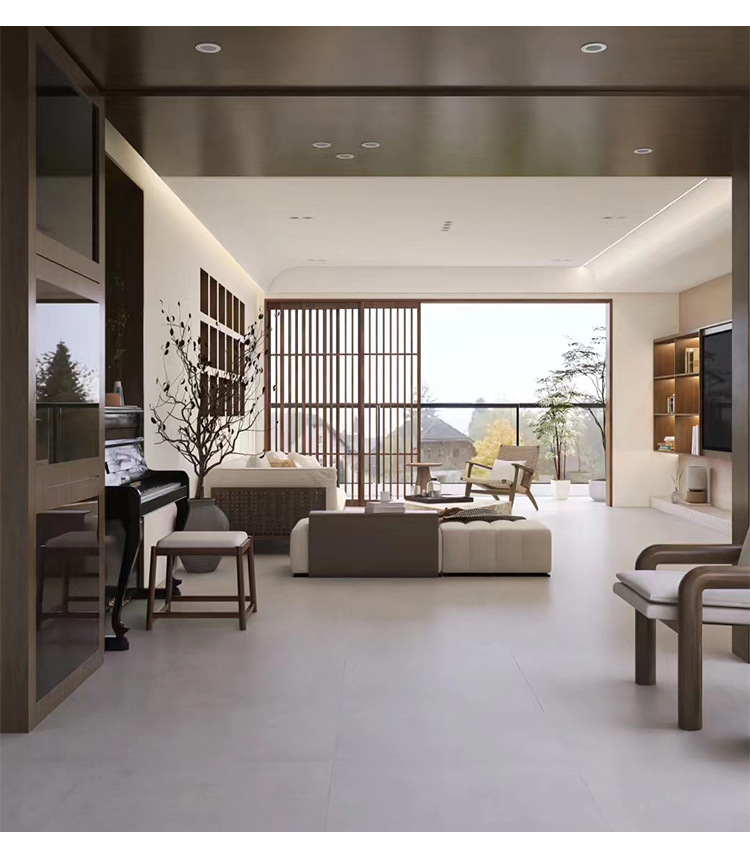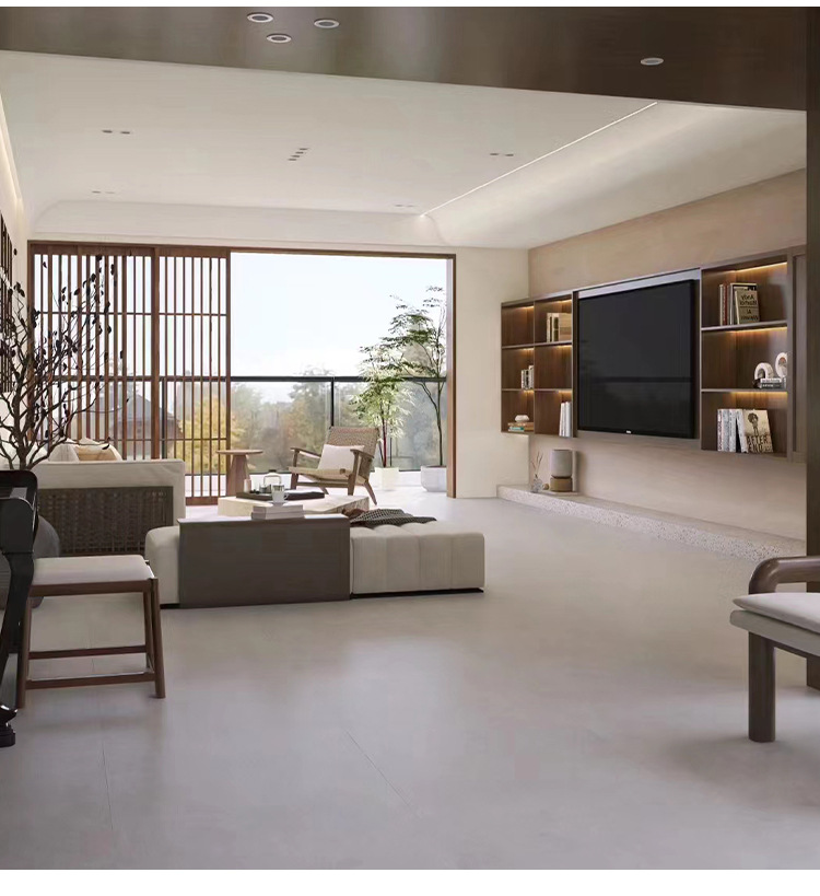Простой микробетонный плитка 600x600 для гостиной, нескользящая, кремового стиля, для ванной, матовая
