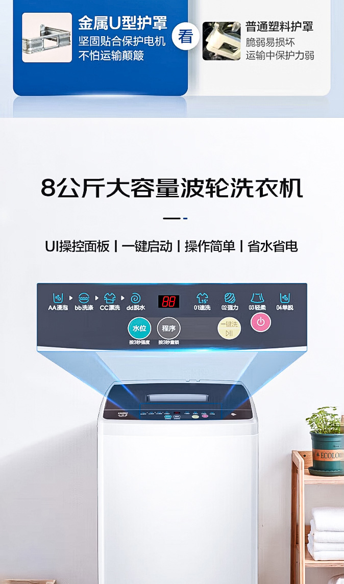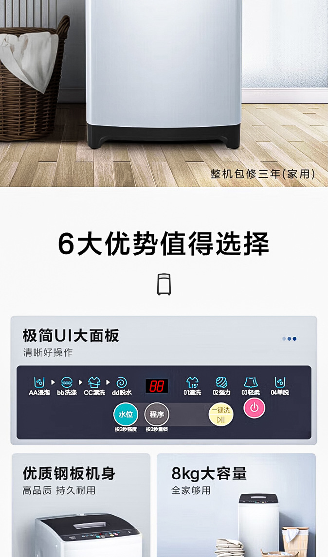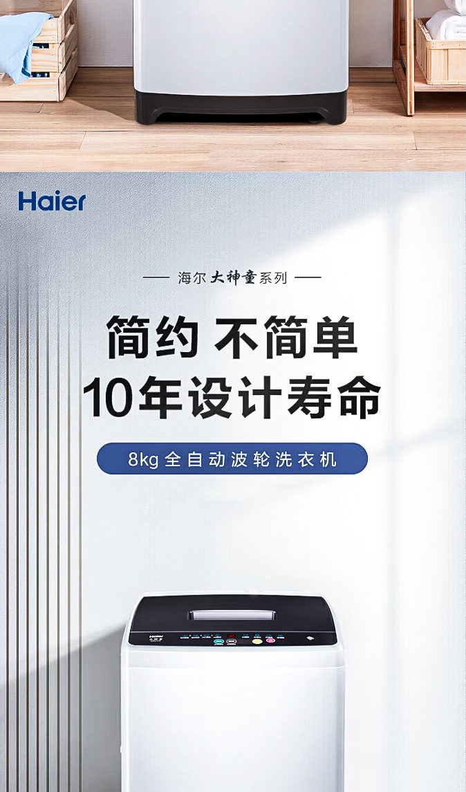 Стиральная машина Haier Pulsator 8кг полностью автоматическая для дома Genuine Xqb80-M106 Smart