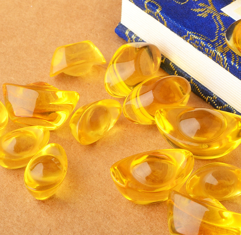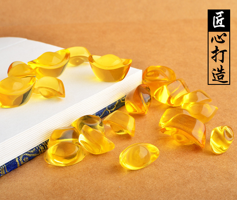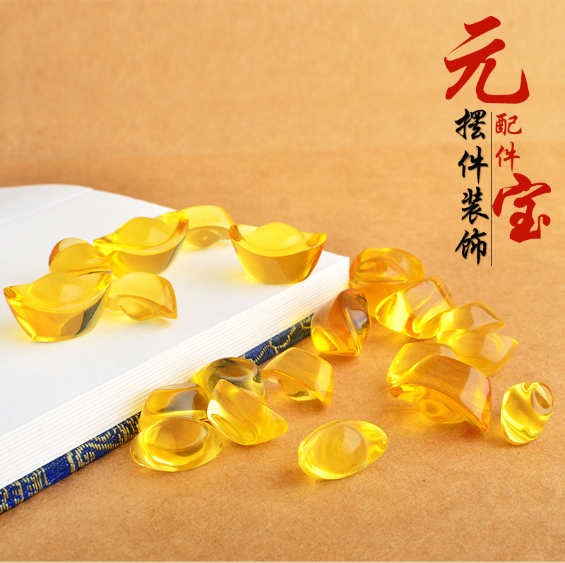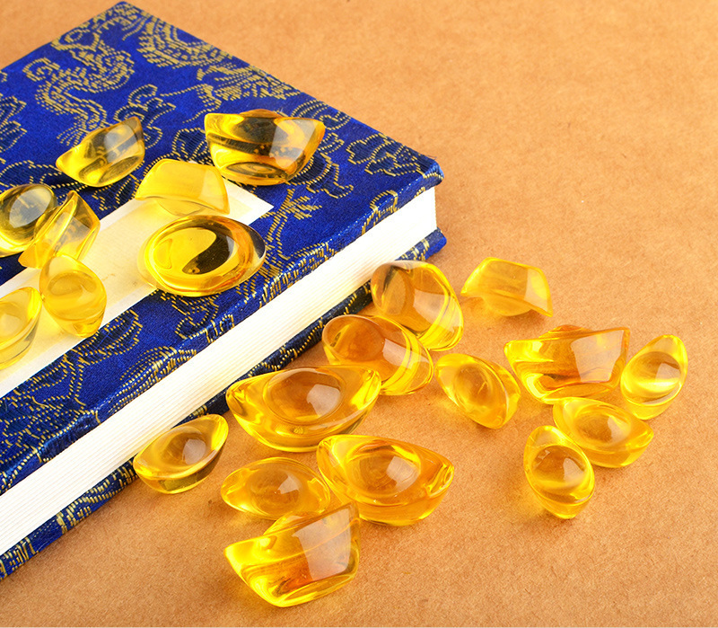 Золотой желтый слиток, стеклянный слиток, искусственная стеклянная кристаллическая декорация, настольные украшения для гостиной, декор рисового бака, рог изобилия