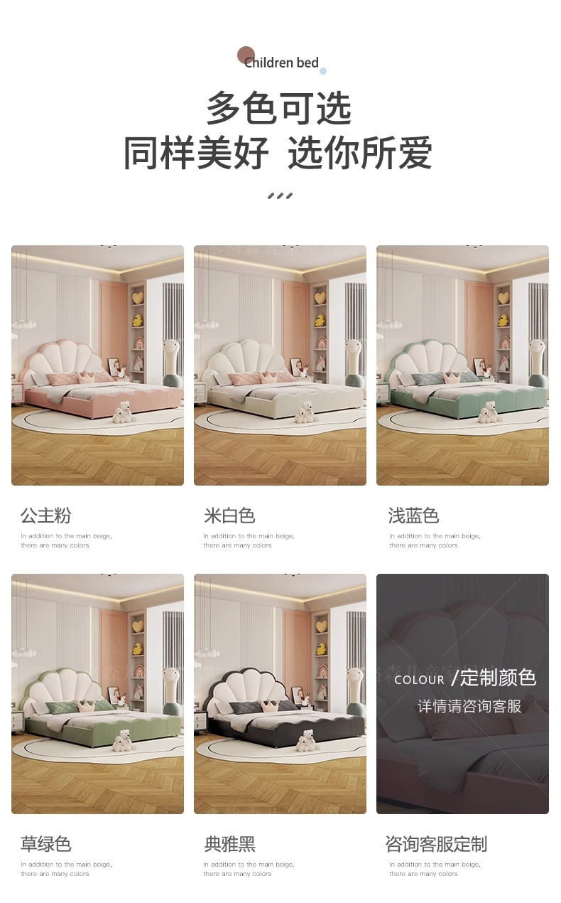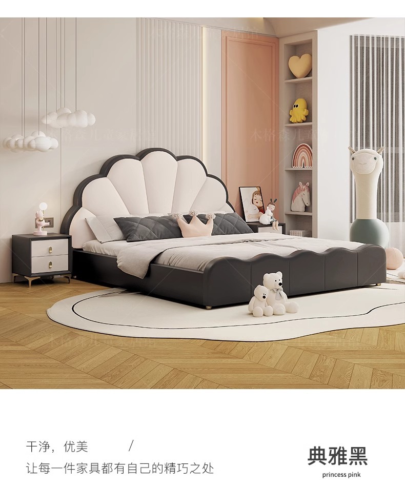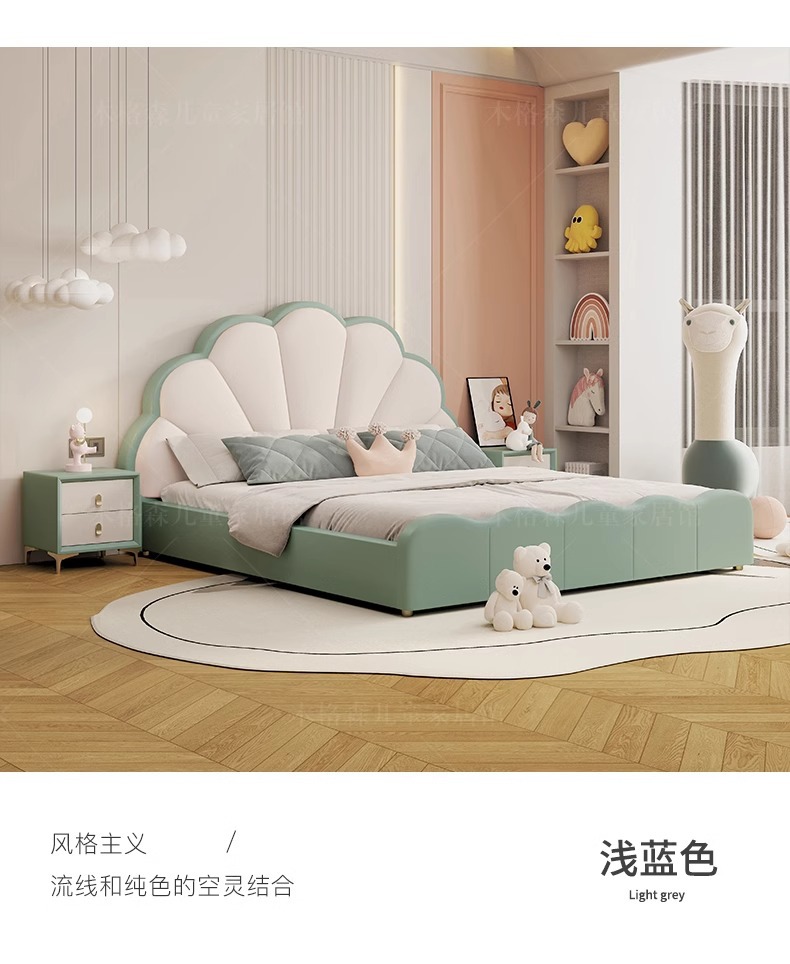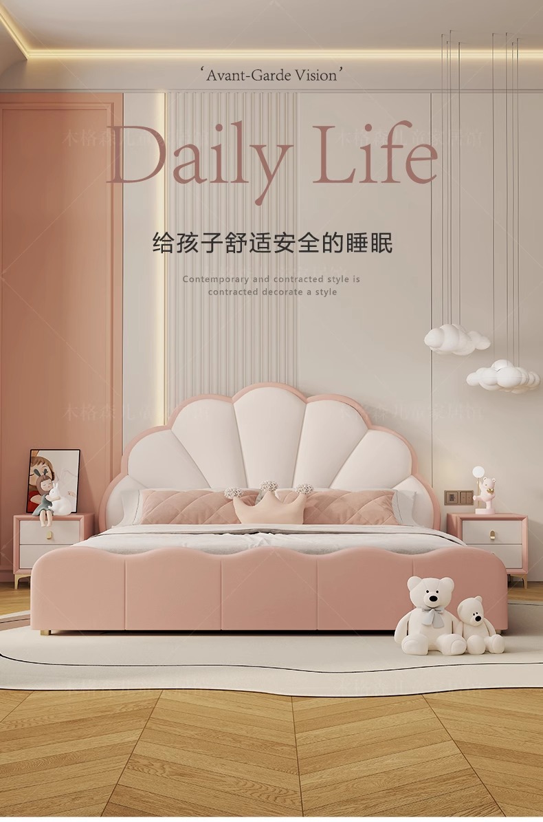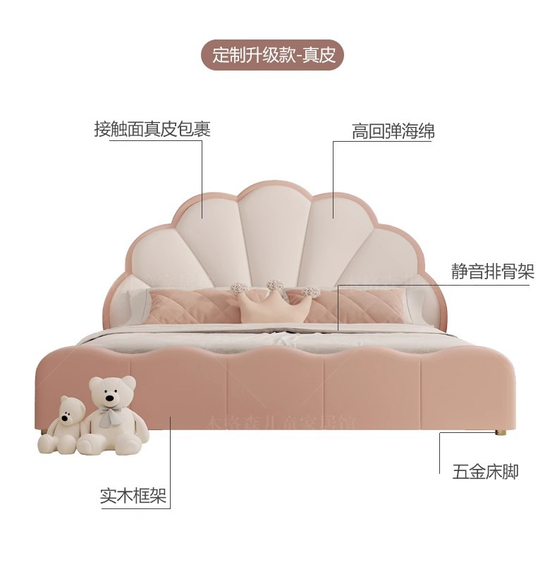 Детская кровать для девочки европейская доступная роскошная кровать-принцесса с лепестками современная простая для мальчика из массива дерева с мягким мешком односпальная кожаная кровать