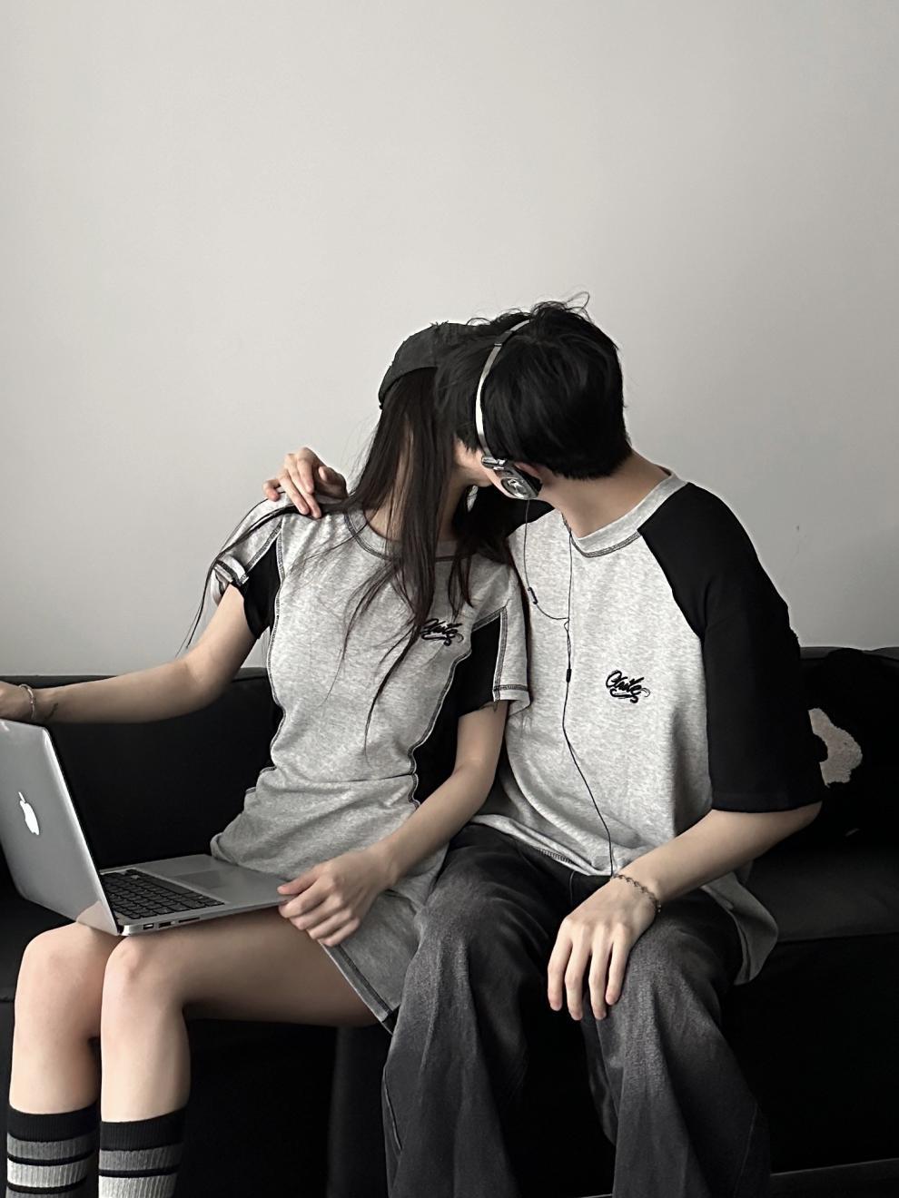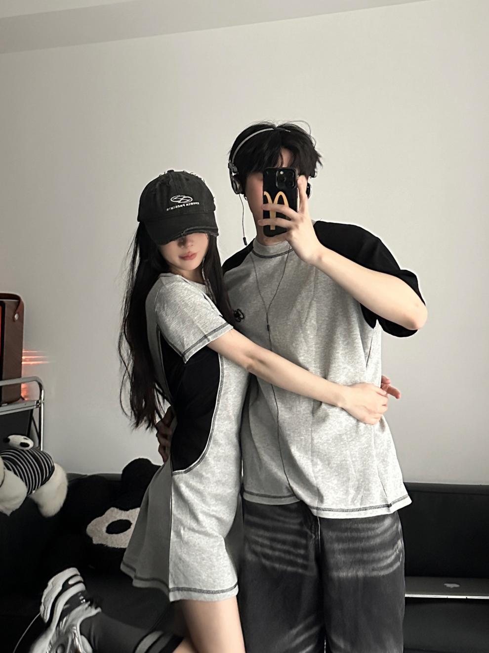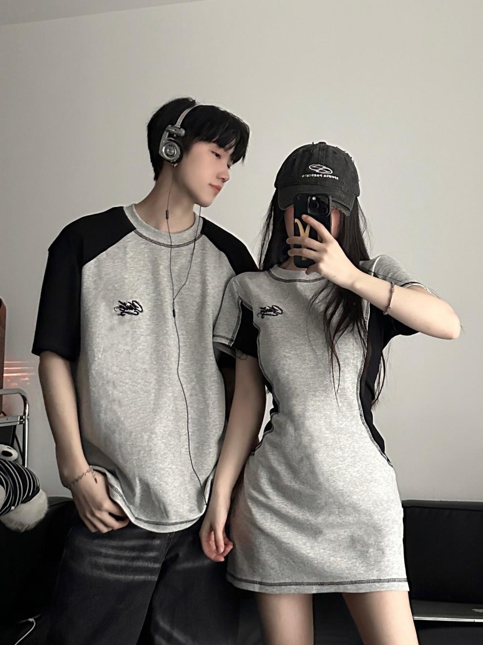 Летнее американское спортивное платье с коротким рукавом, 2024, высокая талия, стройный A-образный силуэт, футболка для пар