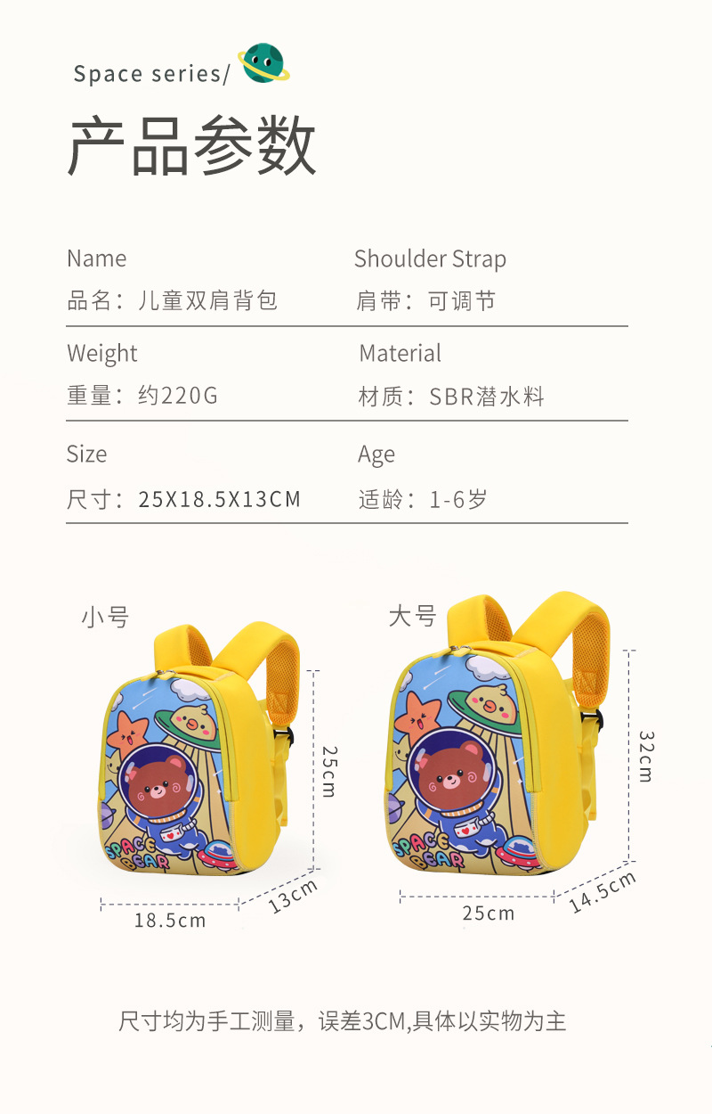 Рюкзак для детского сада из дайвингового материала, для мальчиков и девочек, 1-7 лет, милый мультяшный рюкзак