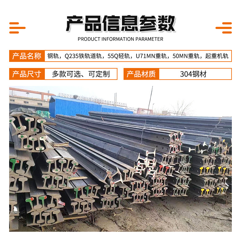 厂家现货Q235轻重铁轨55Q道轨轻轨U71Mn起重机轨铁道钢轨批发重轨