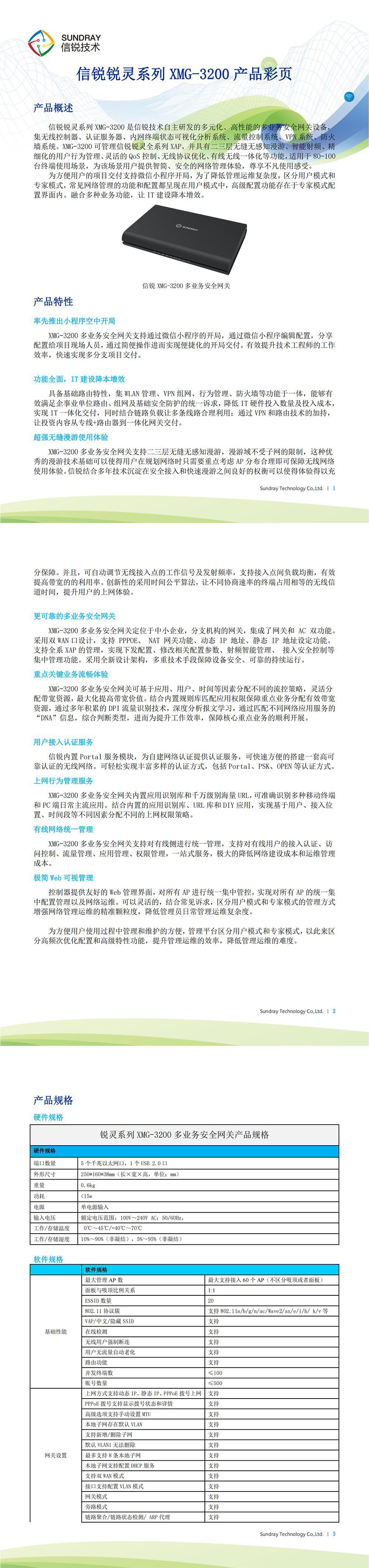 XMG-3200 信锐桌面型一体化路由器,5口千兆以太网口,NAT吞吐性能400M,VPN性能30M,最大支持60个AP(不区分吸顶与面板);最大并发100终端;内置AC电源;塑盒桌面型;AP管理授权及所有功能授权(包括应用识别、VPN、软件升级等)免费赠送。