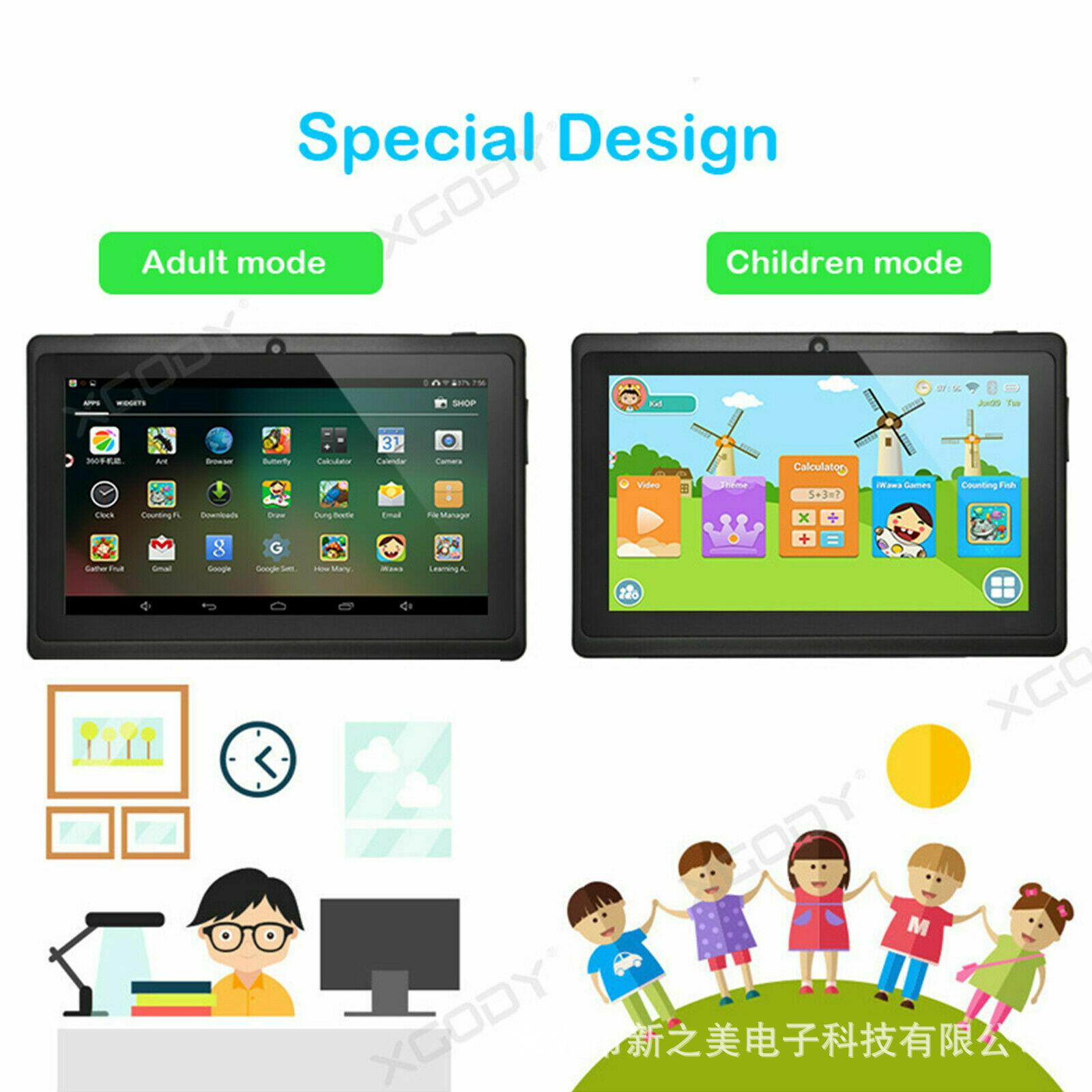 T702 Android 7-дюймовый детский планшет с кожаным чехлом, раннее образование, умный телефон, рисование и обучение, кукла кросс-бодер