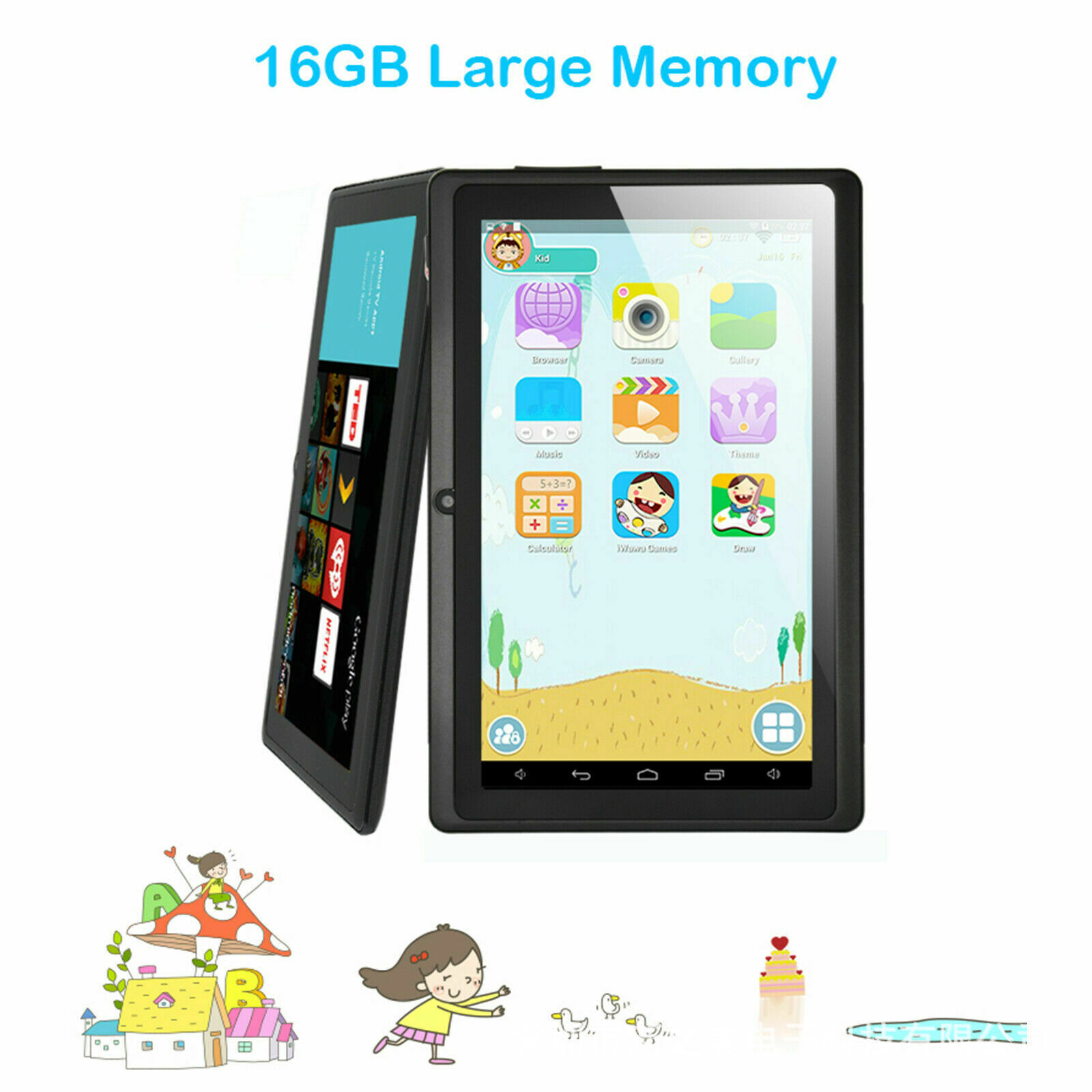 Memory Size-ROM : 16GB internal storage+ tablet storage+ system used some storage