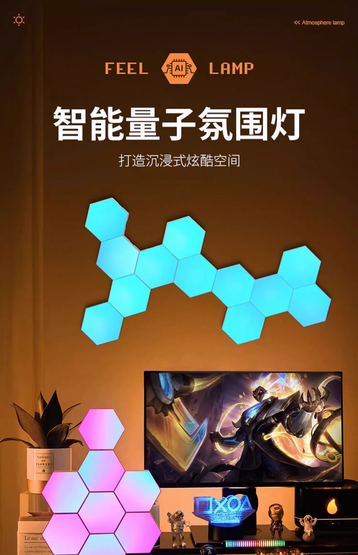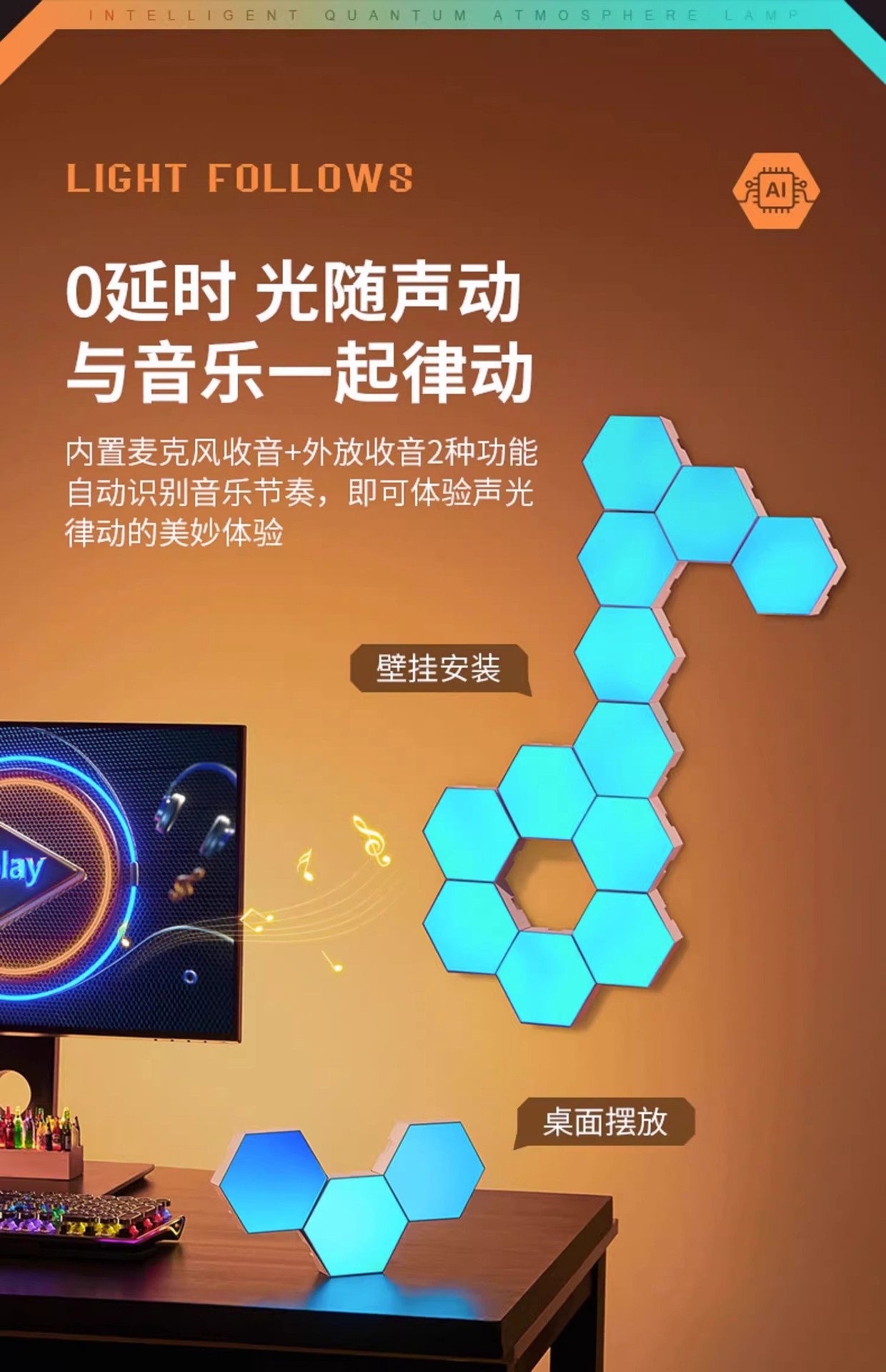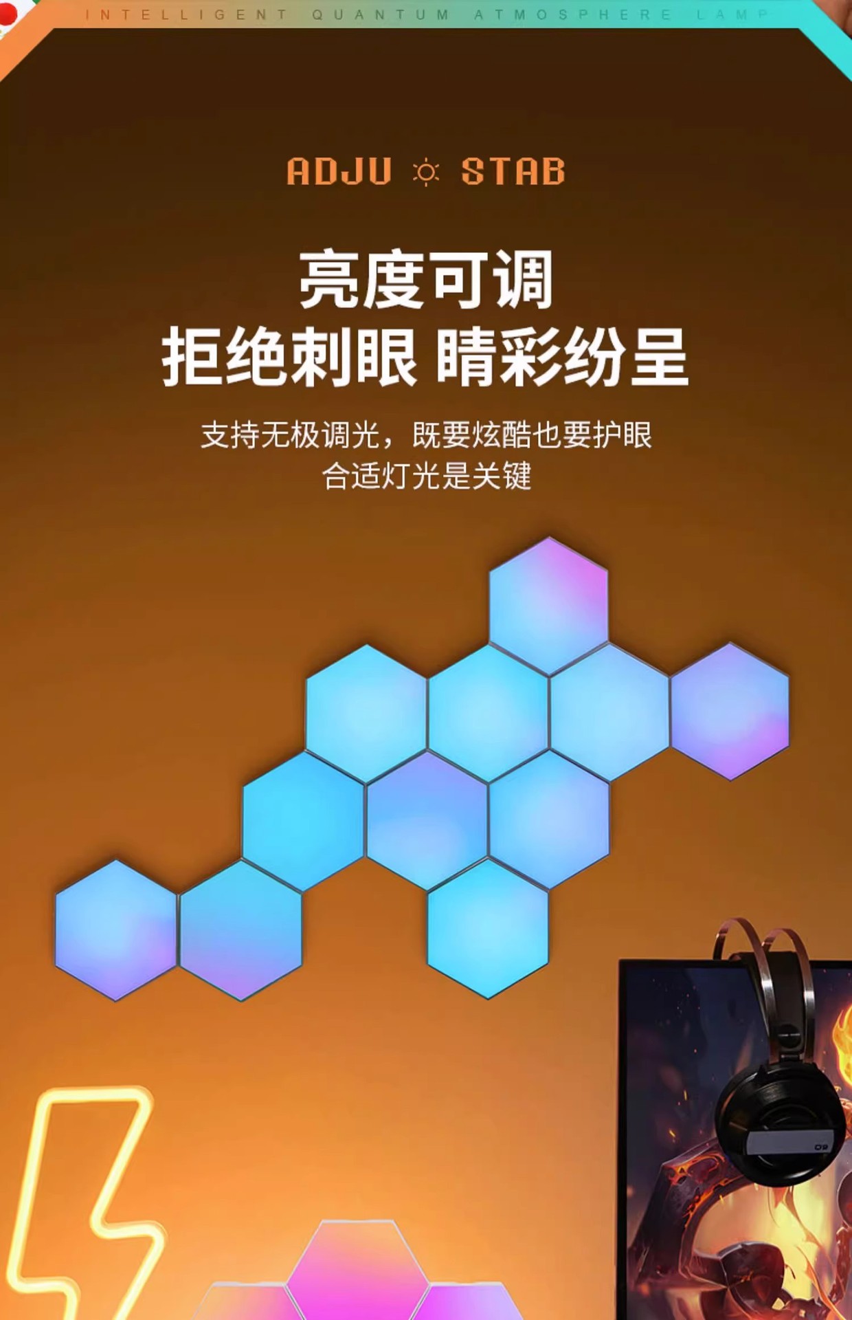 RGB Необычная Лампа Доска Квантовая Атмосфера Лампа Электрическая Конкуренция Комната Декорация Подъем Настольная Стена Без Перфорации Ночной Свет Живая Атмосфера