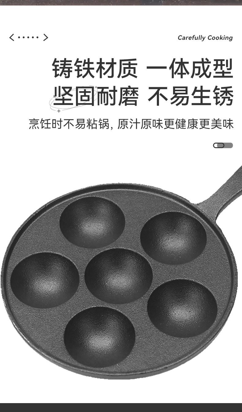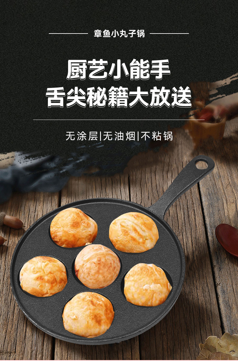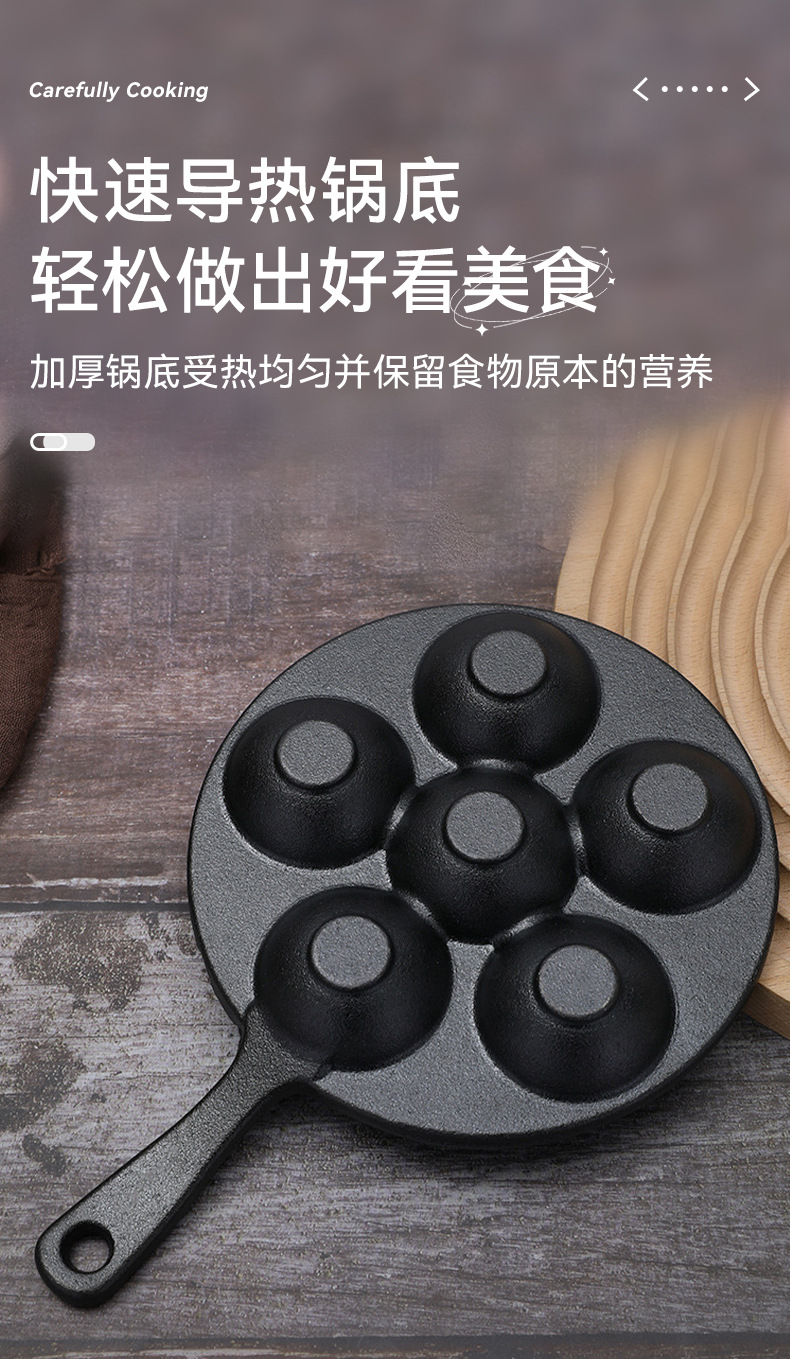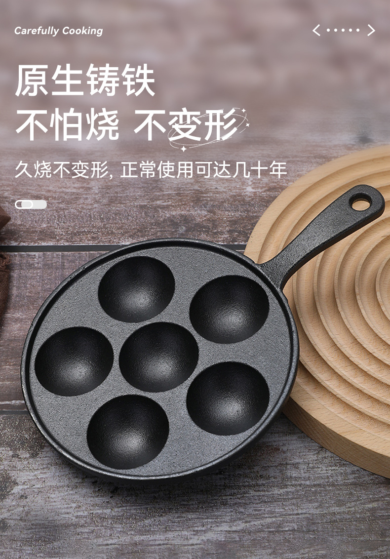 Чугунная форма для осьминожков на шесть отверстий, портативная сковорода для яиц, многофункциональная антипригарная сковорода