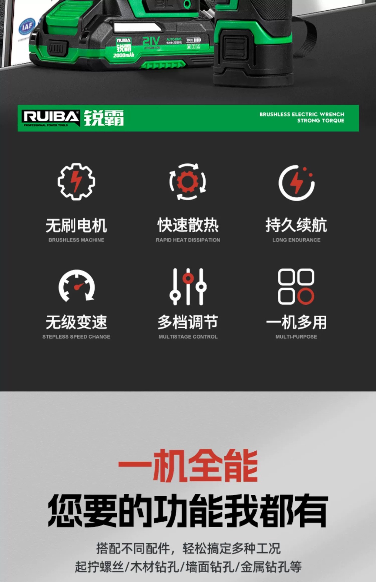 Многофункциональная Руйба перезаряжаемая дрель, ударная бесщеточная, высококрутящий момент, ручная дрель, электрический шуруповерт