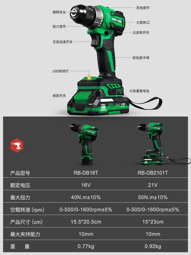 ![]() | Rb-db2101t cordless brushless drill (21v | 2.0ah | Dual power | 50 nm | 10mm | Iron chuck | ¥435.0 / ≈ 5 291 ₽ | 7 | 5758825393758 | |