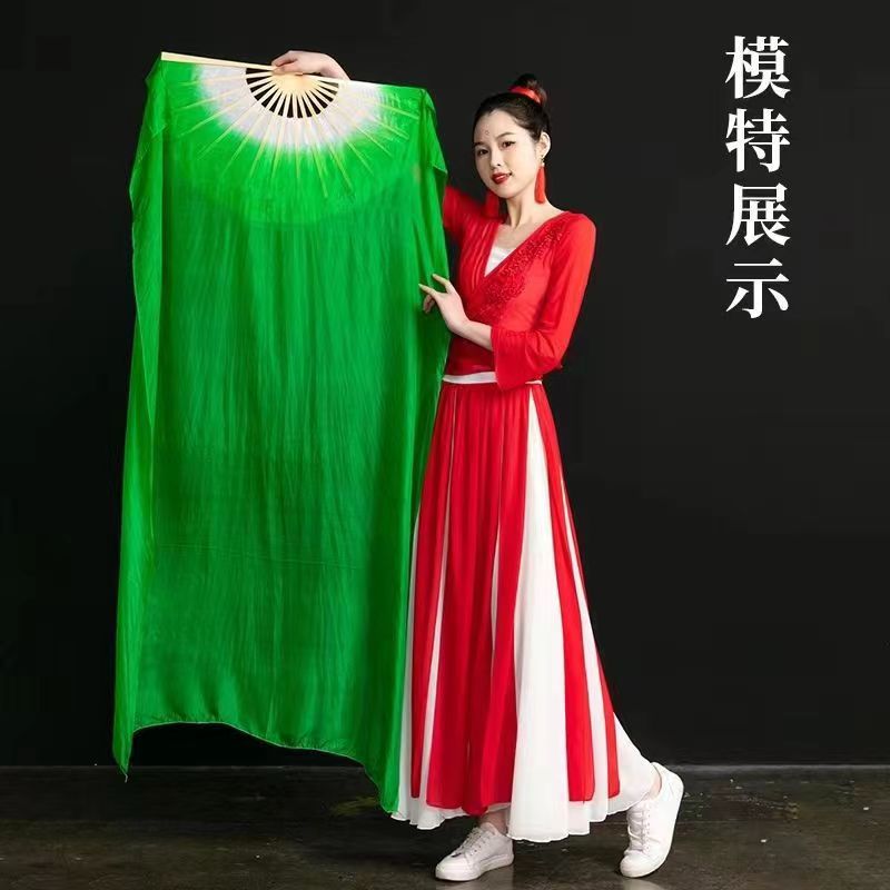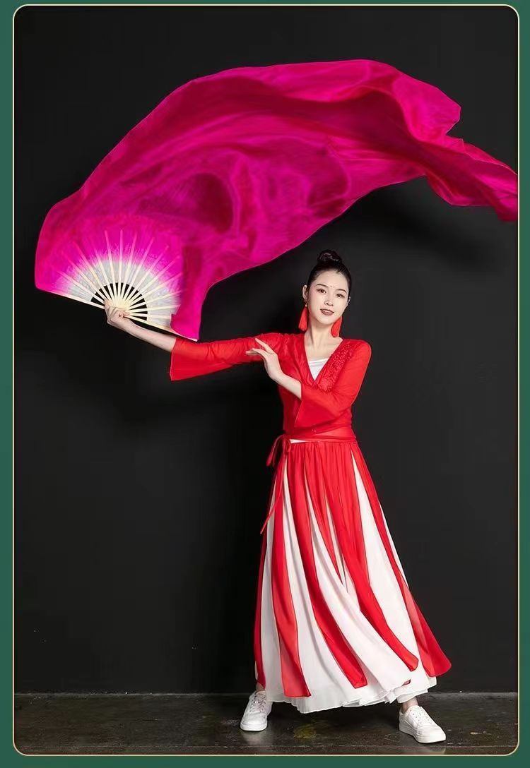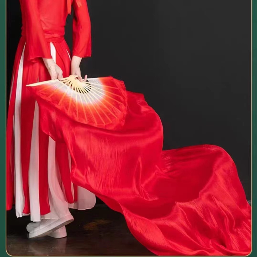 Шелковый классический танцевальный длинный веер, китайский стиль, красный градиент, удлиненный, розовый танцевальный веер