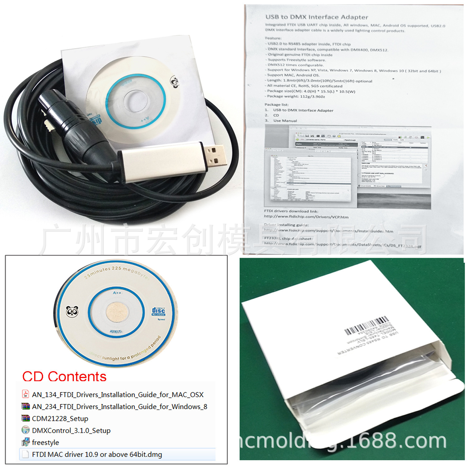 USB转DMX512控台适配器线舞台灯光电脑控制线调试线DMX编码器线