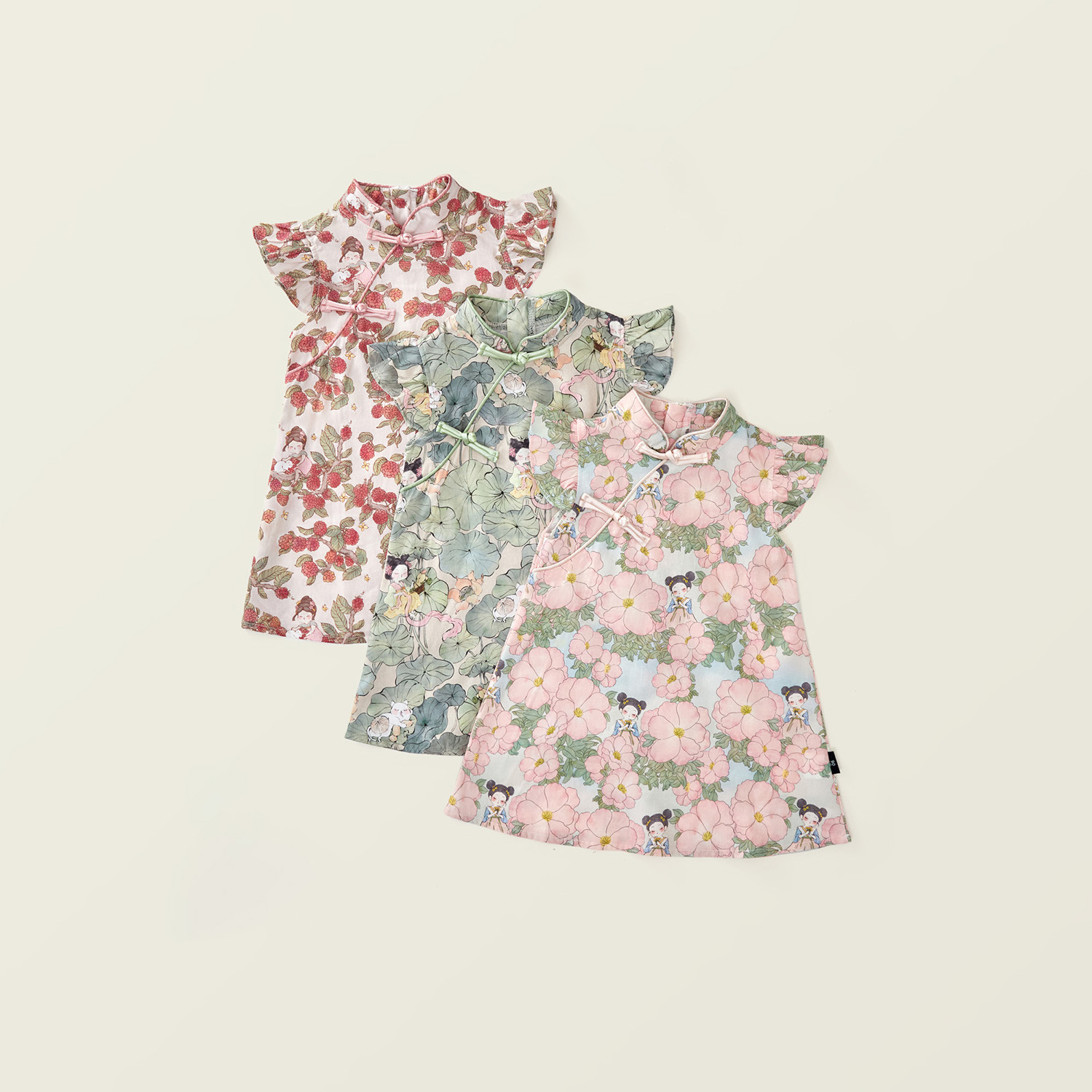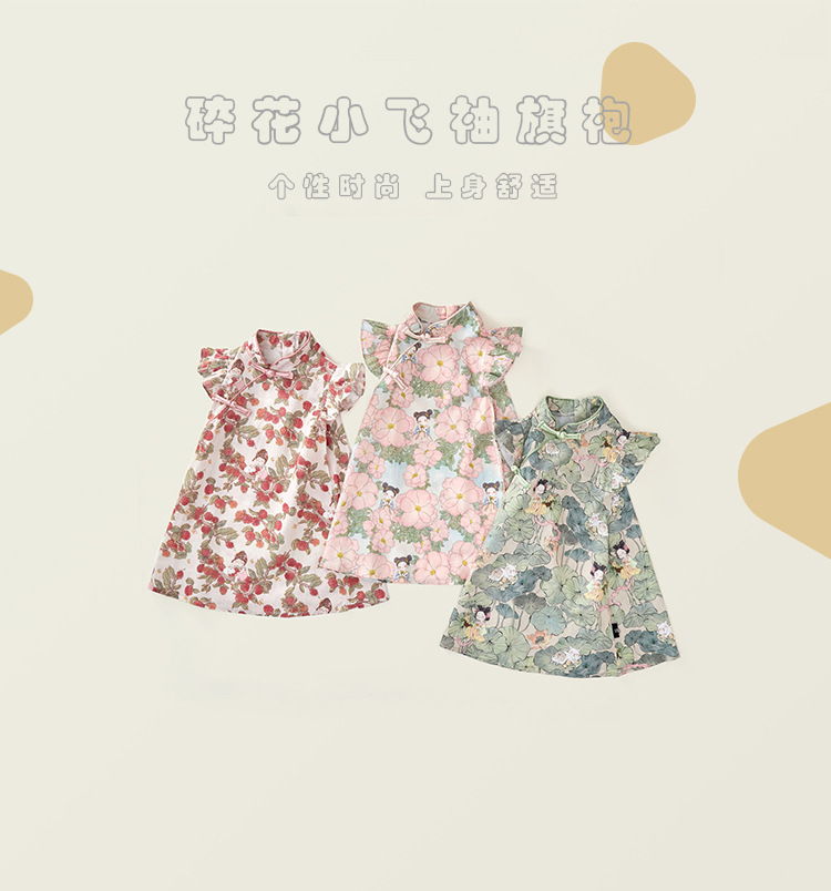 Детская одежда Jila для девочек чонгсам в стиле китайской живописи 2025 летний новый стиль оптовая продажа детского платья из чистого хлопка