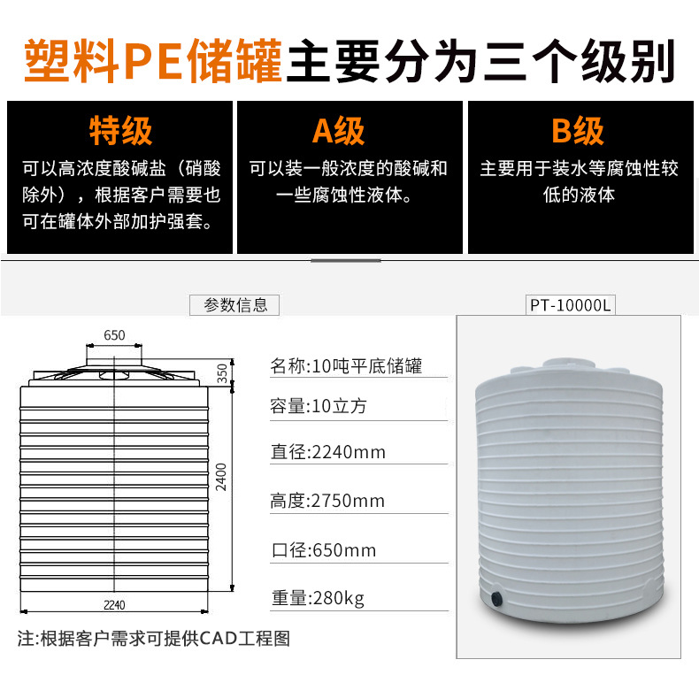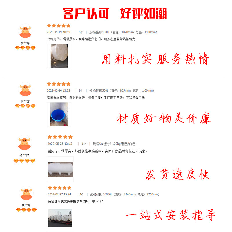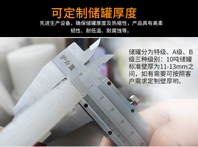 本店塑料储罐水塔采用优质PE原料,厚度从3.5mm到15mm不等,满足不同客户的需求。产品厚度越大,承压能力越强,价格也相对较高。一般来说,3.5mm-7mm厚度适合家庭日常储水,8mm-12mm厚度适合水压较大的场所,12mm以上厚度适合工业防腐级用途。如果您不确定选择哪种厚度,欢迎咨询客服,我们将根据您的具体需求为您推荐合适的产品。