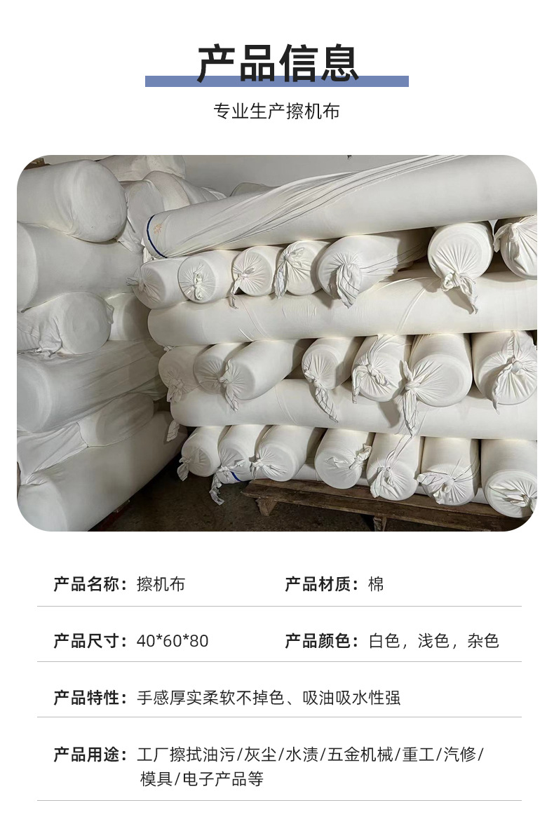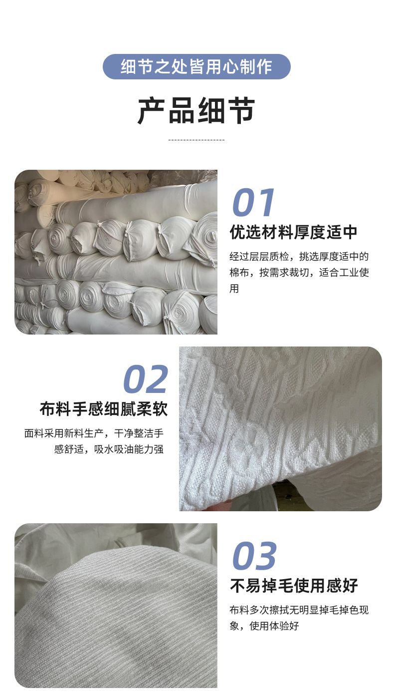 Ткань для машинной уборки, чистый хлопок, промышленная тряпка, белая, впитывающая воду и масло, не выцветает и не линяет, новая хлопковая ткань