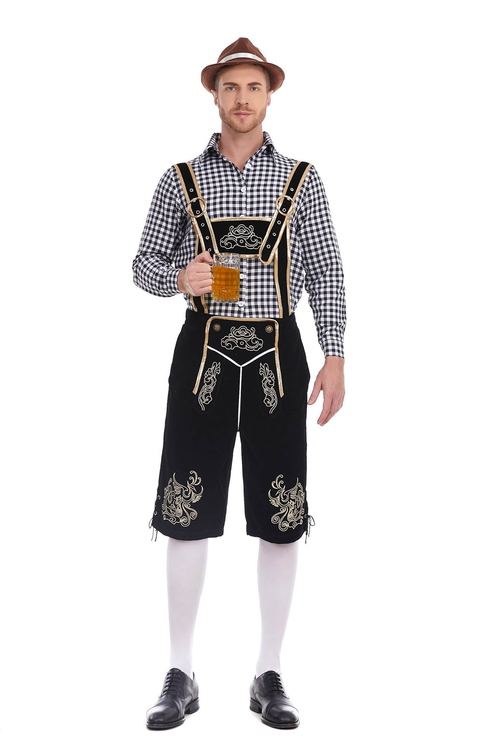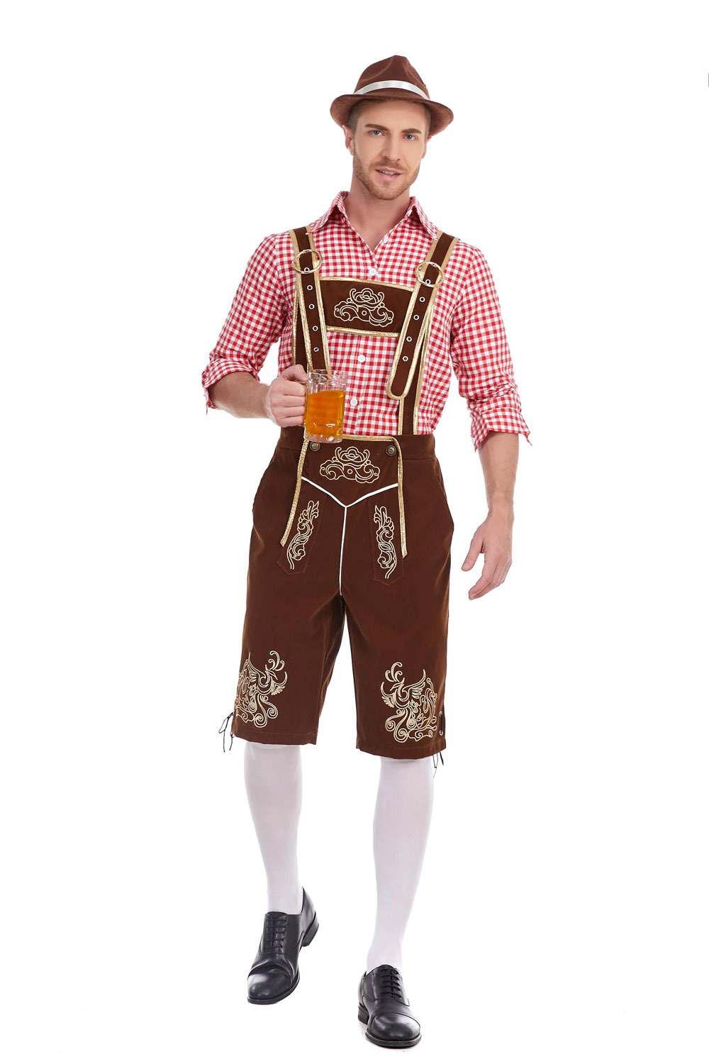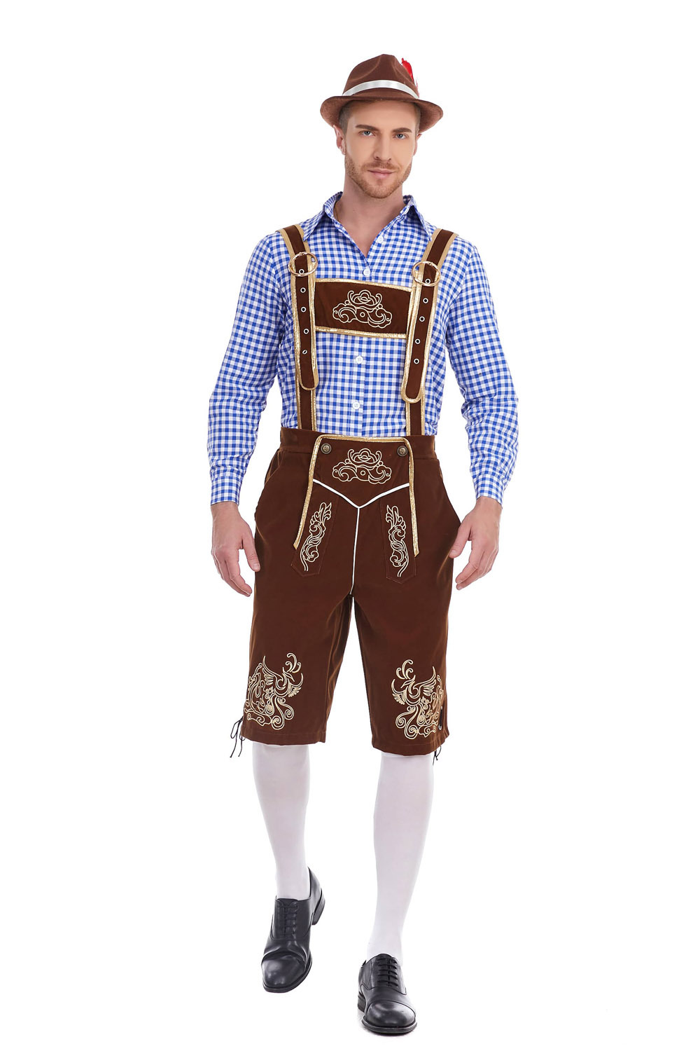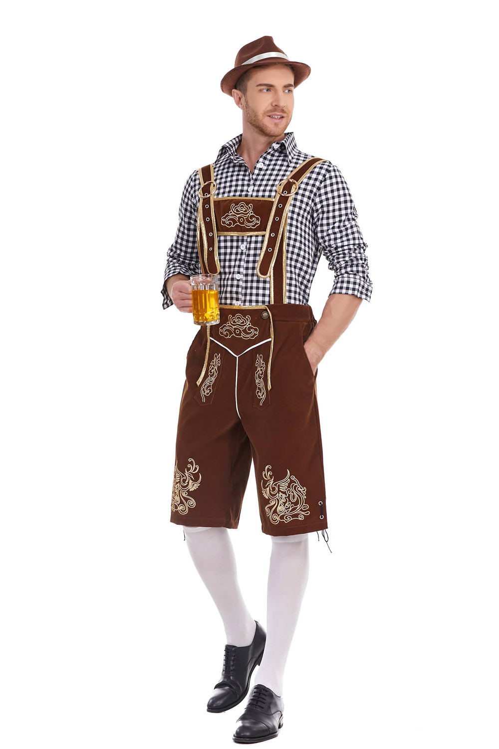 Баварская национальная одежда для мужчин, рубашка в клетку, вышитые подтяжки, брюки с шляпой