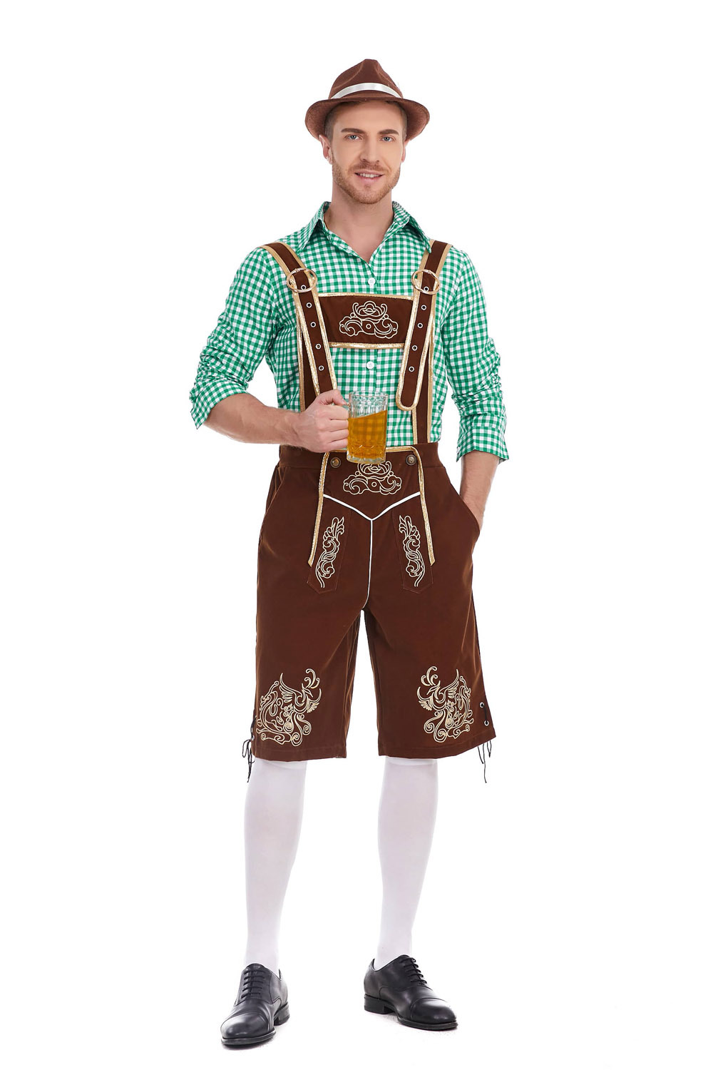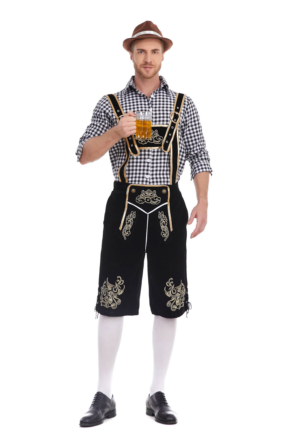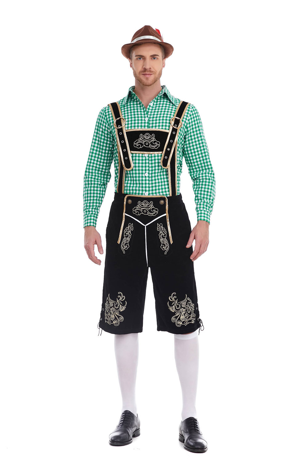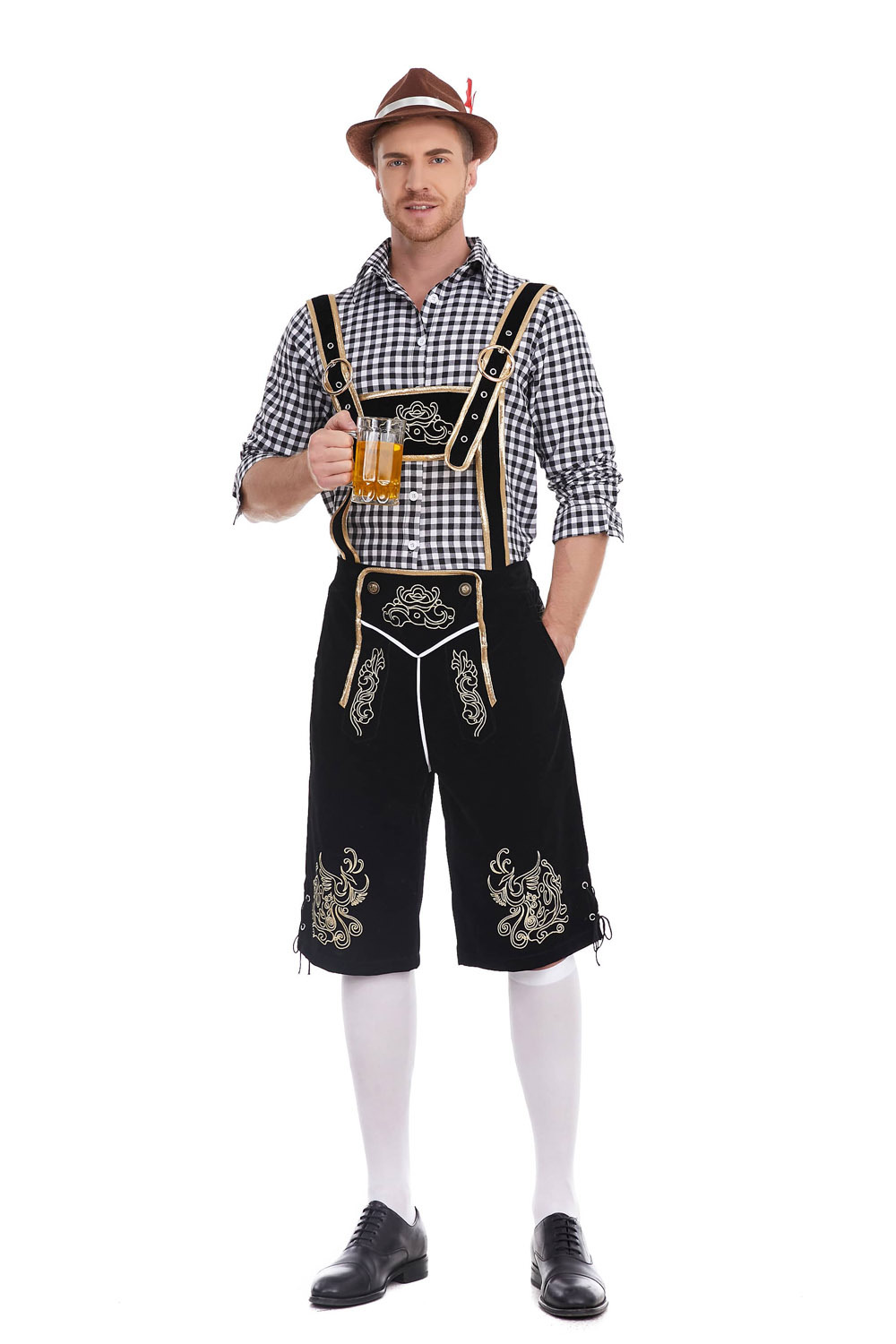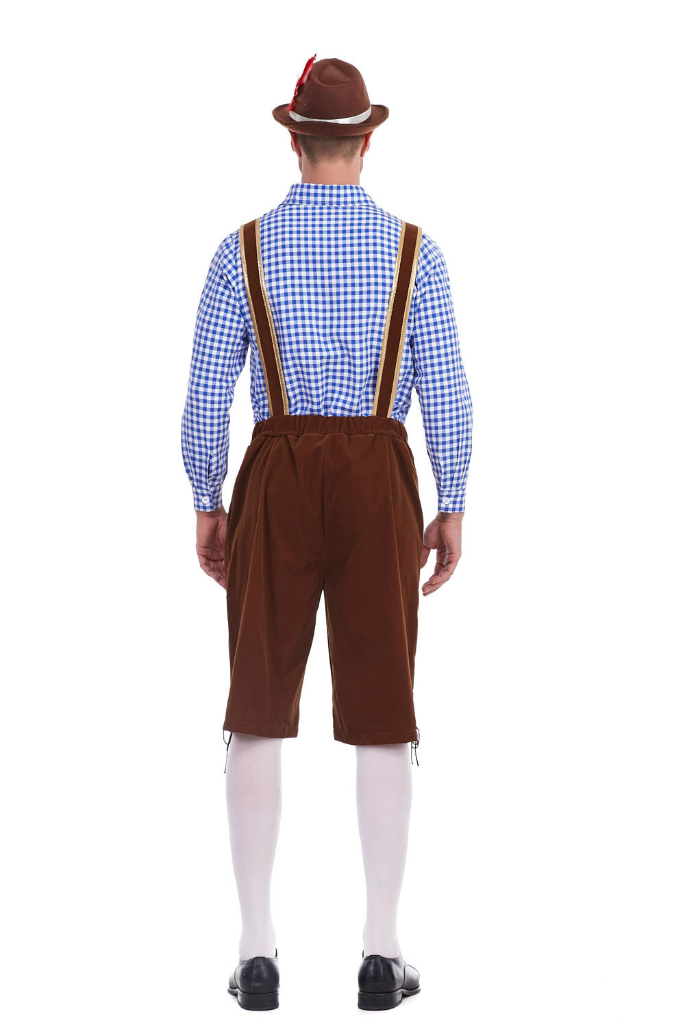 Баварская национальная одежда для мужчин, рубашка в клетку, вышитые подтяжки, брюки с шляпой