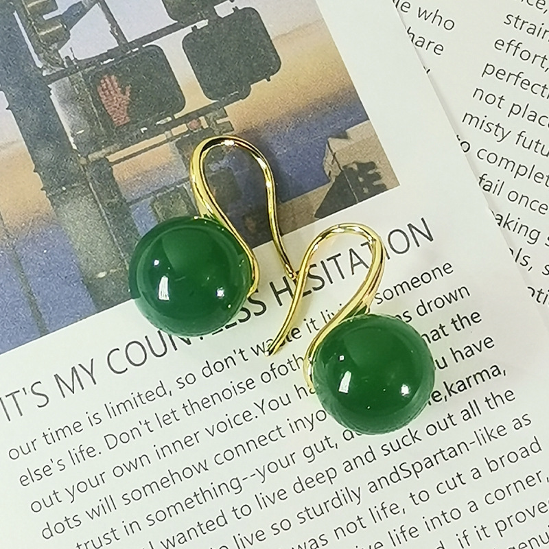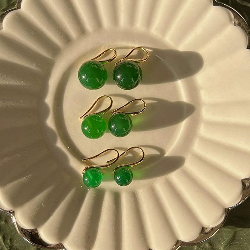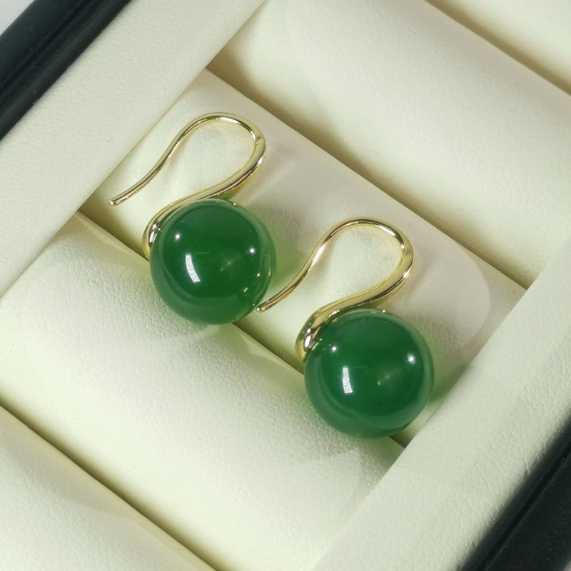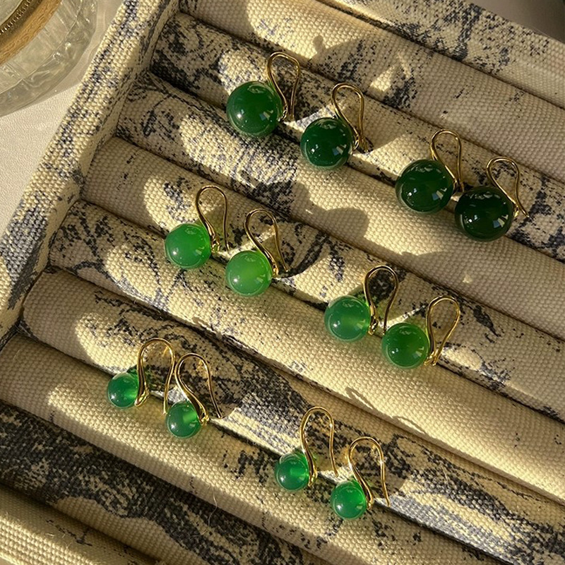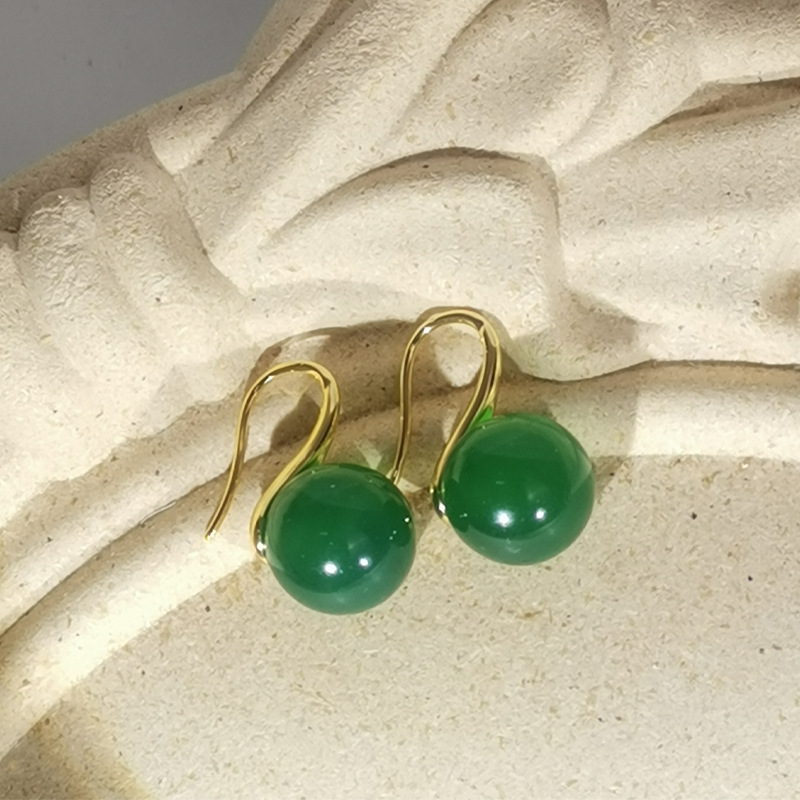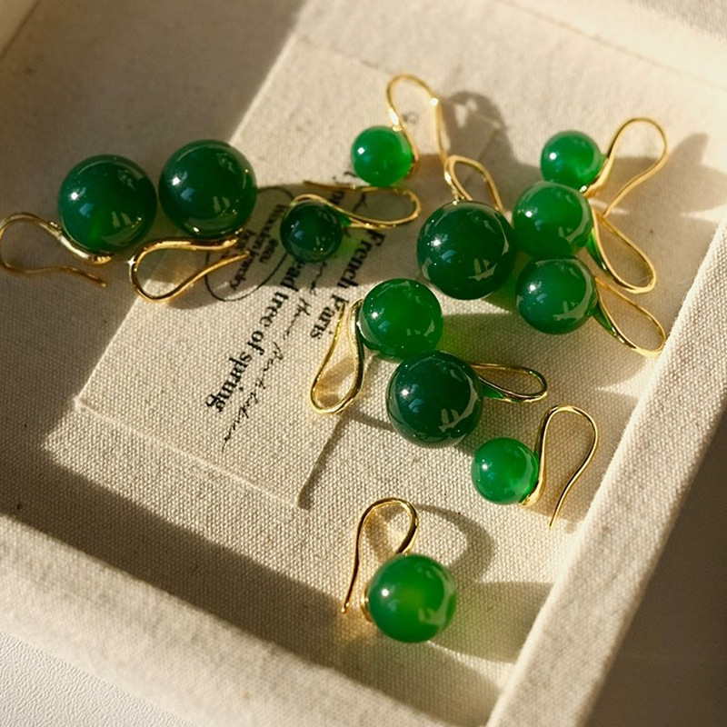 Высококачественные круглые натуральные зеленые халцедоновые серьги на крючках Joker классические зеленые халцедоновые серьги оптом