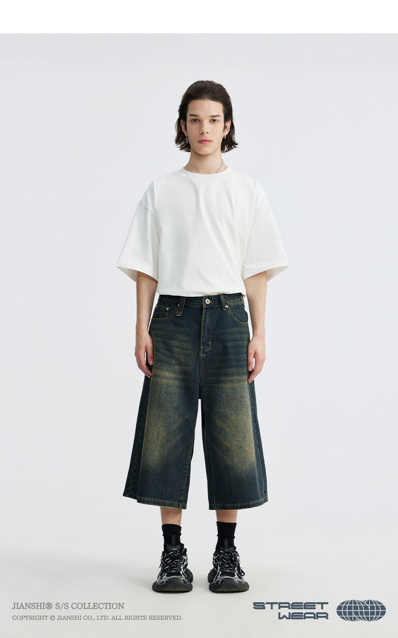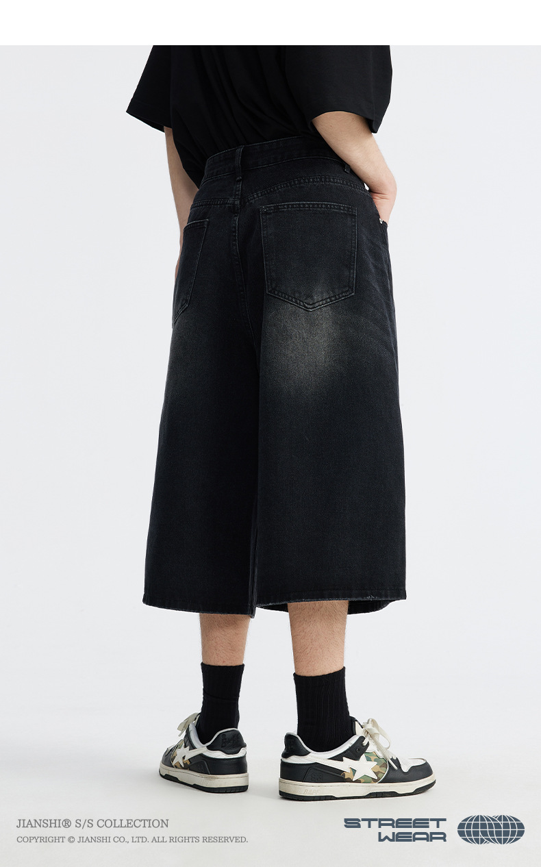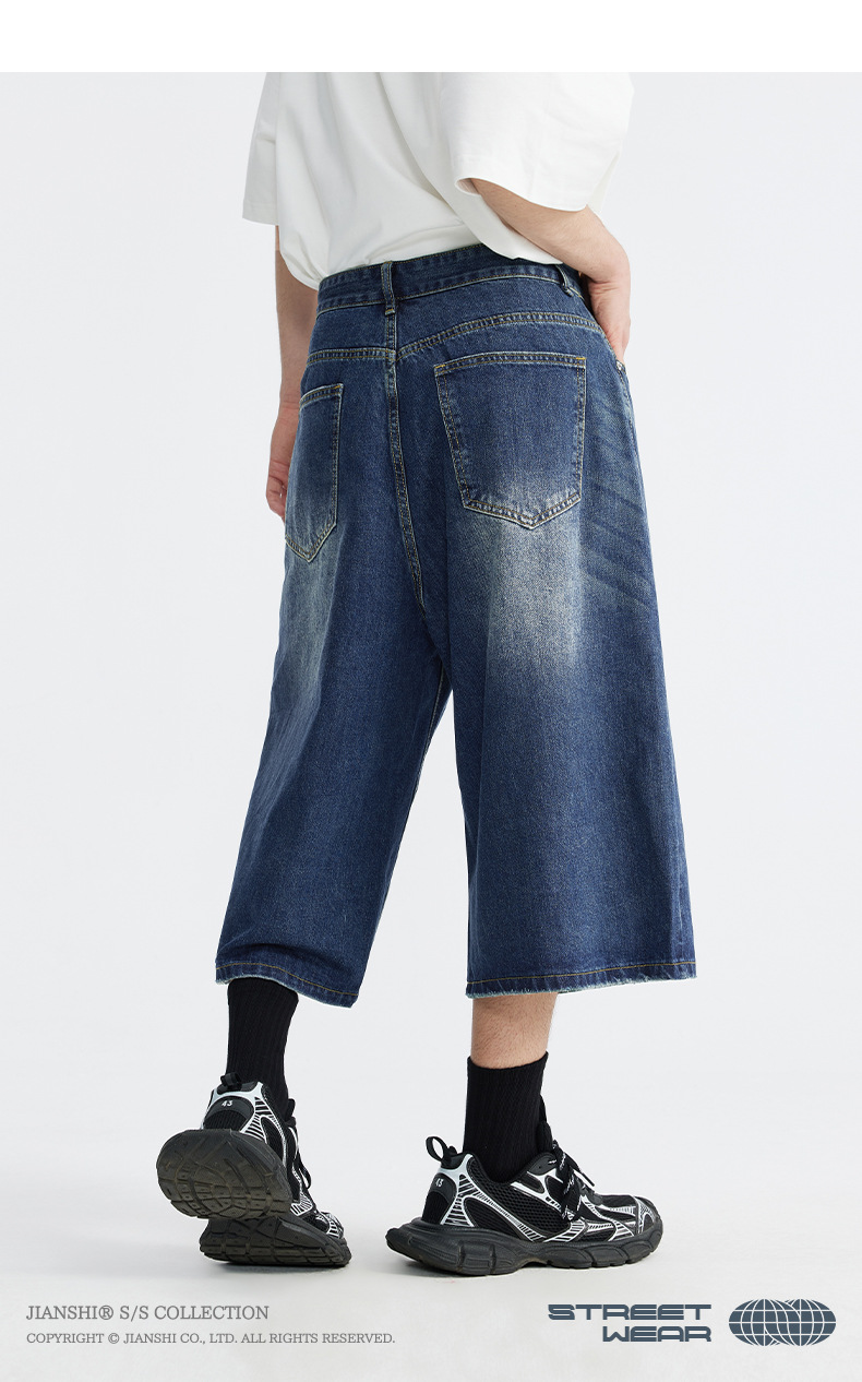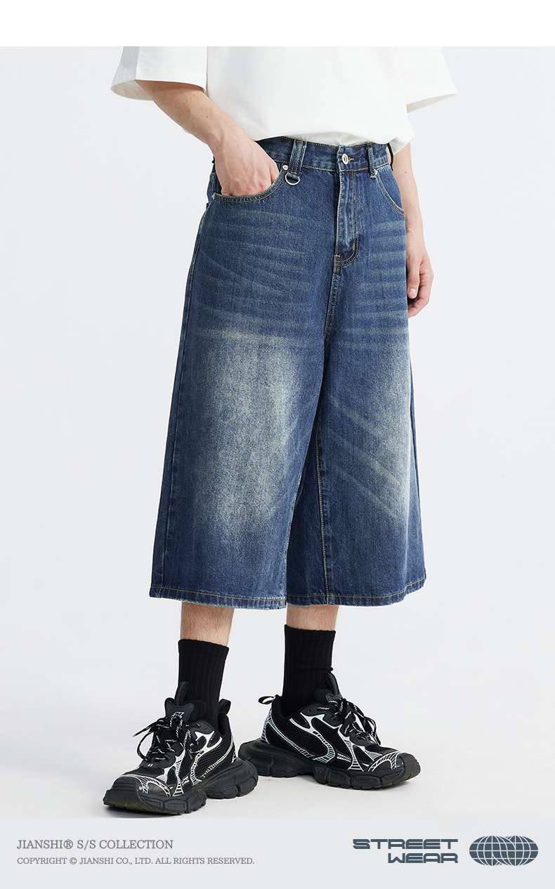 Джинсы с широкими штанинами Seven-point, стилизованные, для мужчин, новый американский модный бренд, уличный стиль, прямые шорты