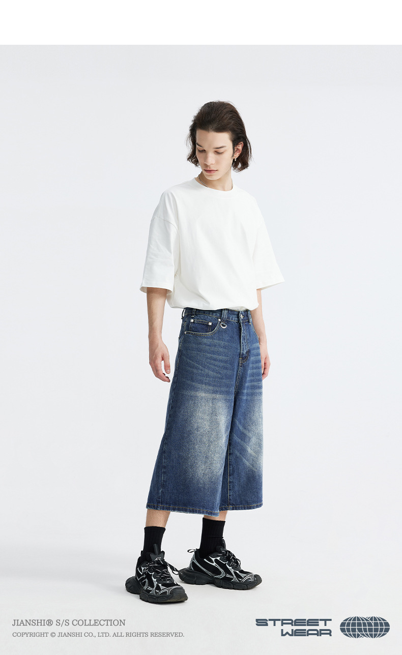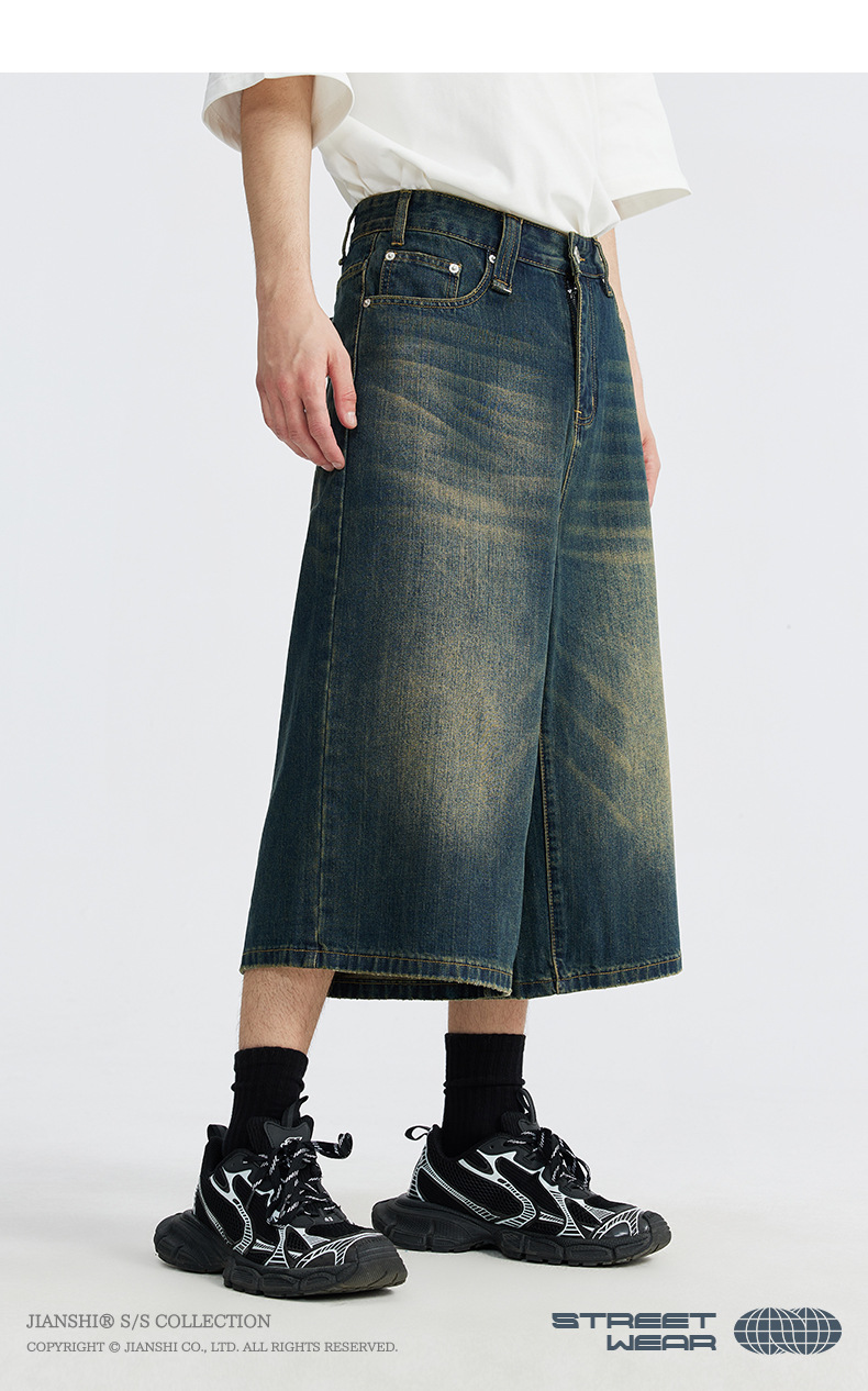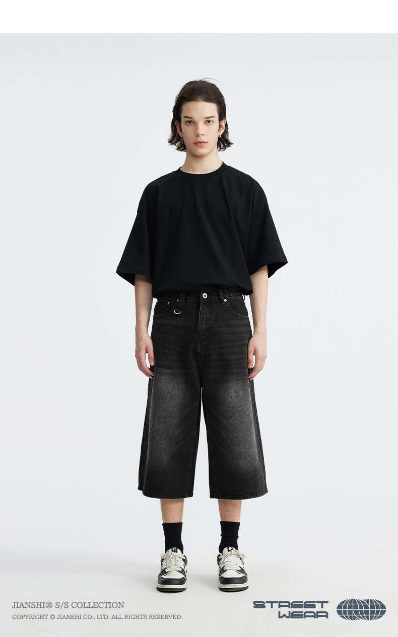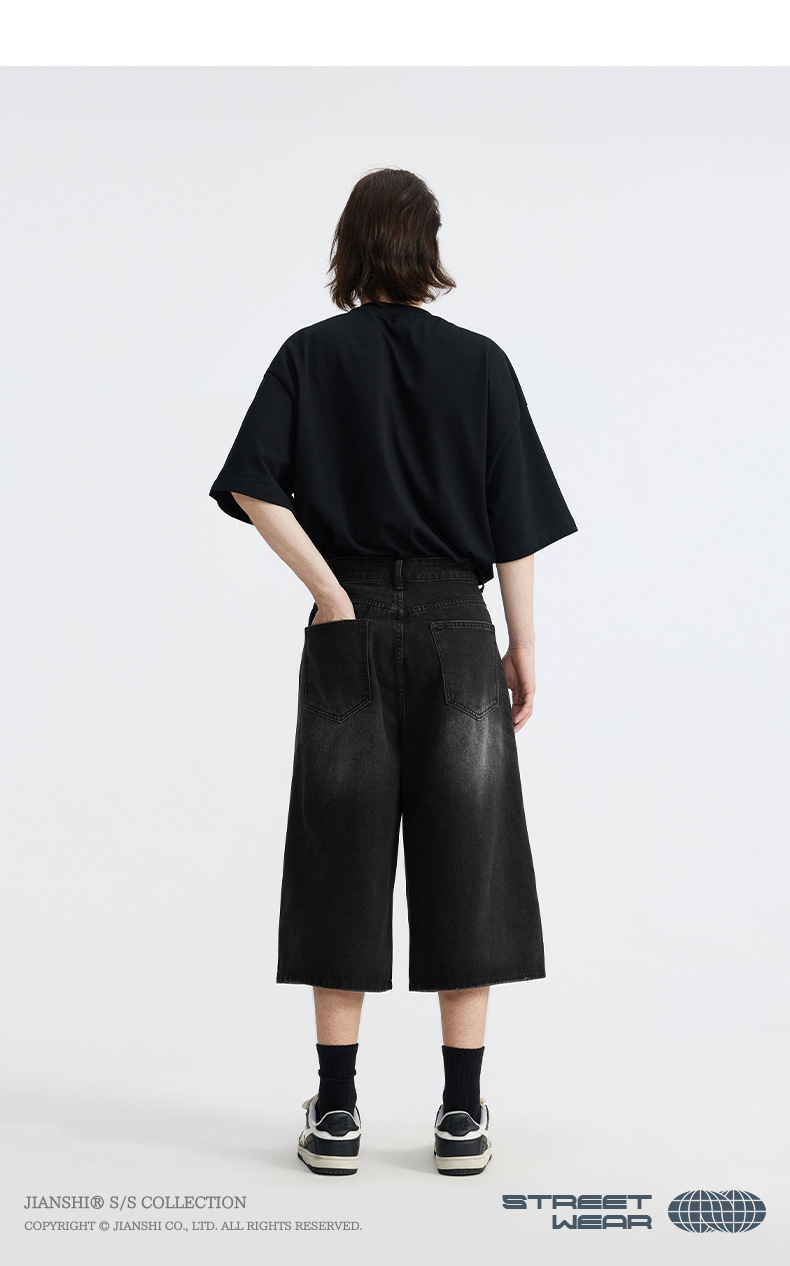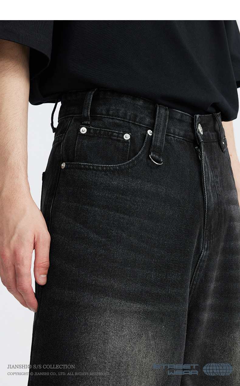 Джинсы с широкими штанинами Seven-point, стилизованные, для мужчин, новый американский модный бренд, уличный стиль, прямые шорты