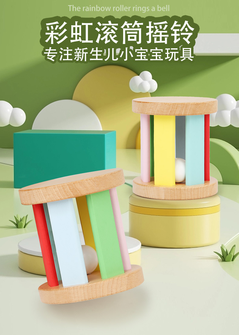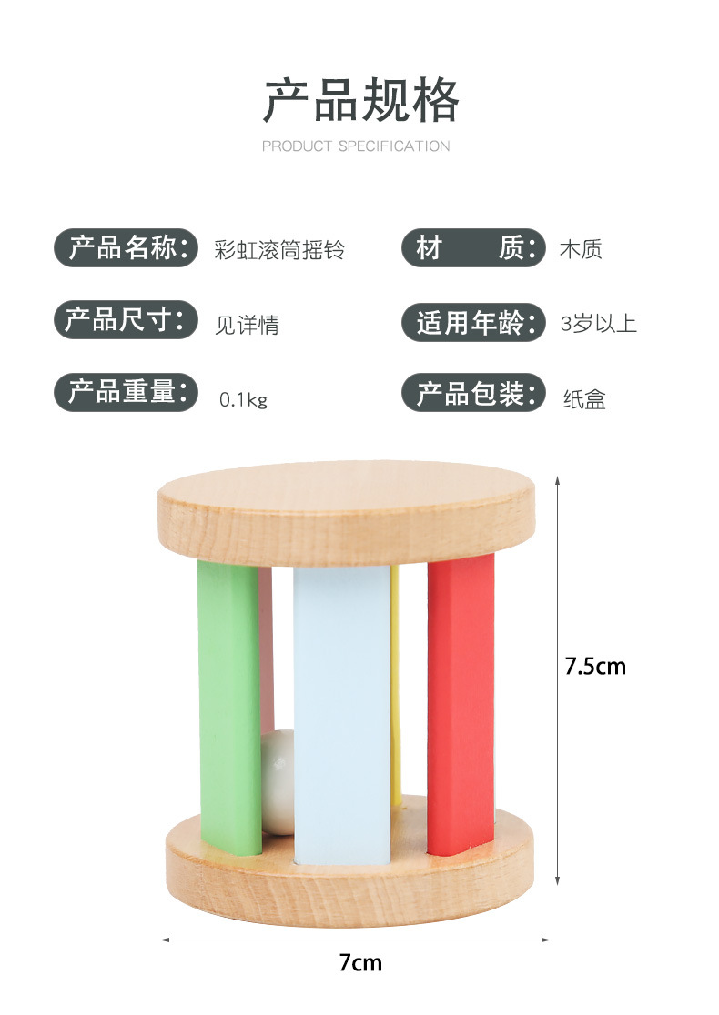 产品名称:彩虹手摇铃 产品彩盒尺寸:8.3*7.6*7.6cm