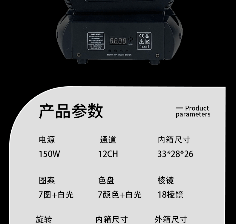 Сценическое освещение 150W, большой стальной движущийся светильник, LED, цветной вращающийся световой паттерн