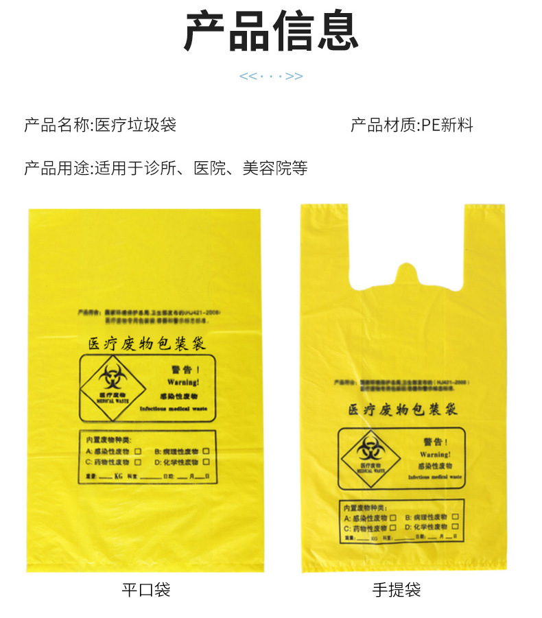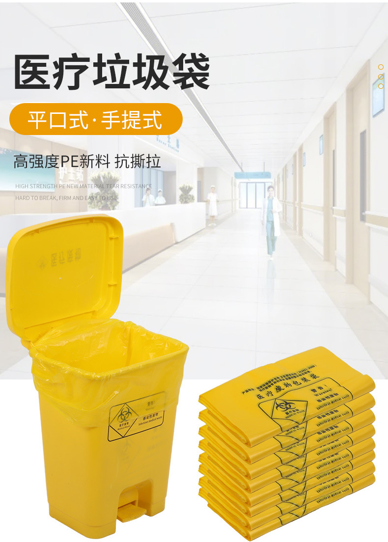 Индивидуальный медицинский мешок для отходов для больницы клиники утолщенный большой сумочный пластиковый пакет для отходов желтого цвета с плоским ртом