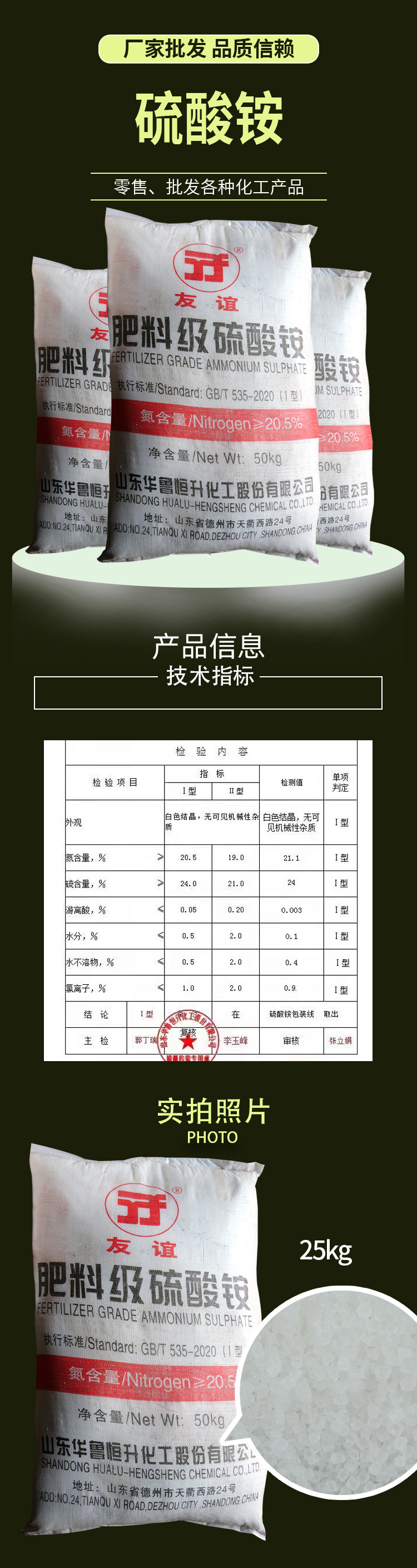 Аммоний сульфат промышленного качества Hualu Hengsheng 50кг / мешок CAS:7783-20-2 смягчитель воды