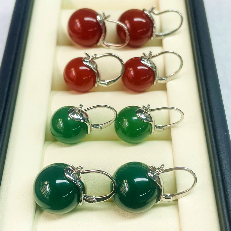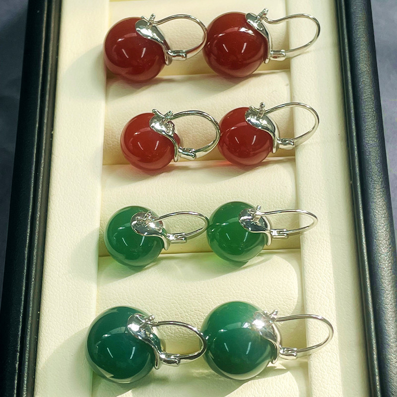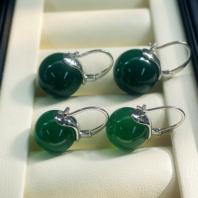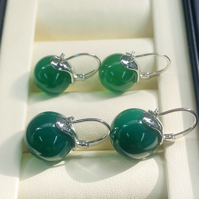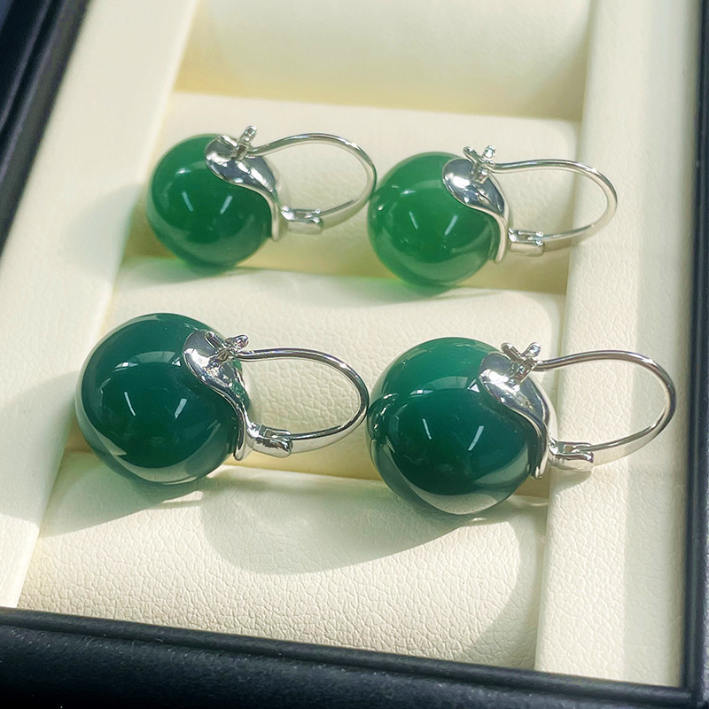 Высококачественные круглые натуральные зеленые халцедоновые серьги с застежкой Joker классические зеленые халцедоновые серьги оптом