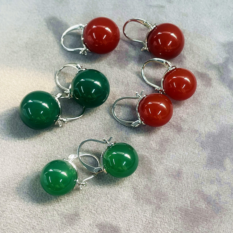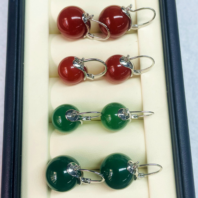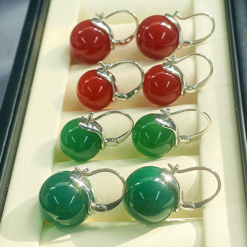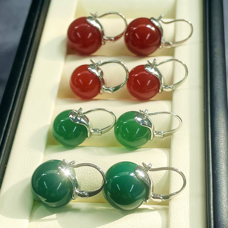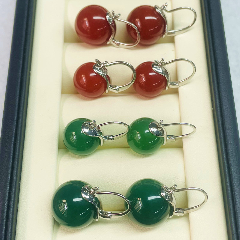 Высококачественные круглые натуральные зеленые халцедоновые серьги с застежкой Joker классические зеленые халцедоновые серьги оптом