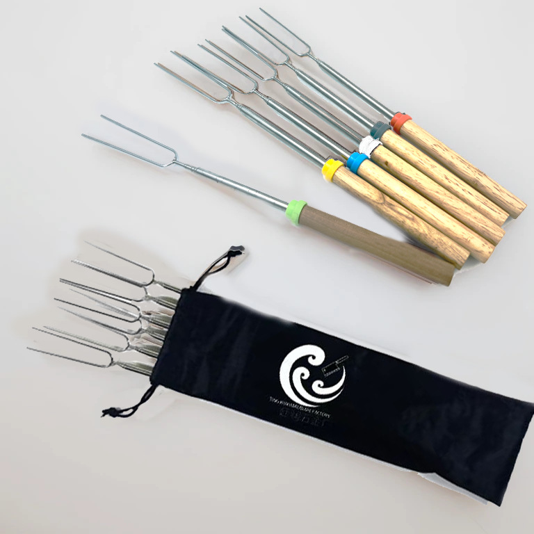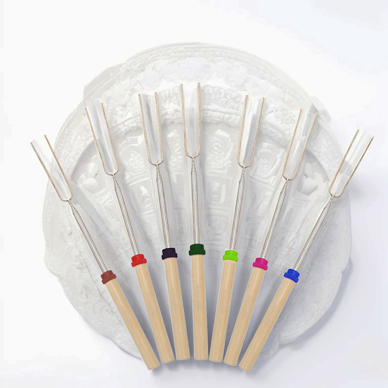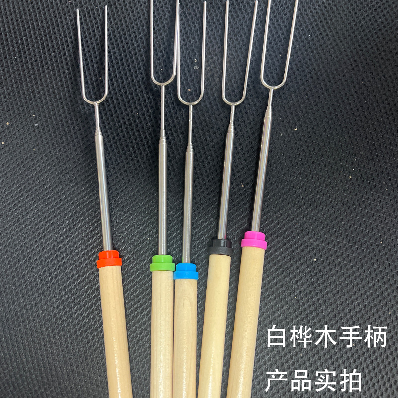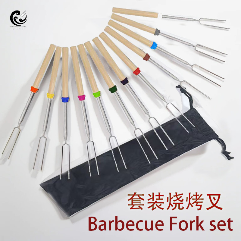 Цветной уличный барбекю нержавеющий стальной телескопический барбекю-вилка 12 цветной набор вилка с деревянной ручкой