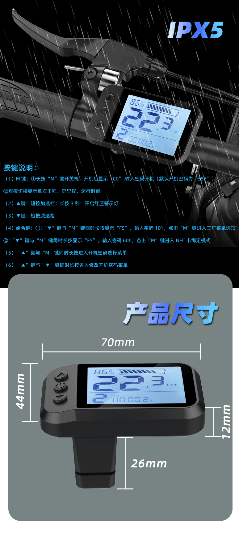 Электрический автомобиль, Bluetooth разблокировка, водонепроницаемая смарт Lcd панель, дисплей батареи, компьютер автомобиля