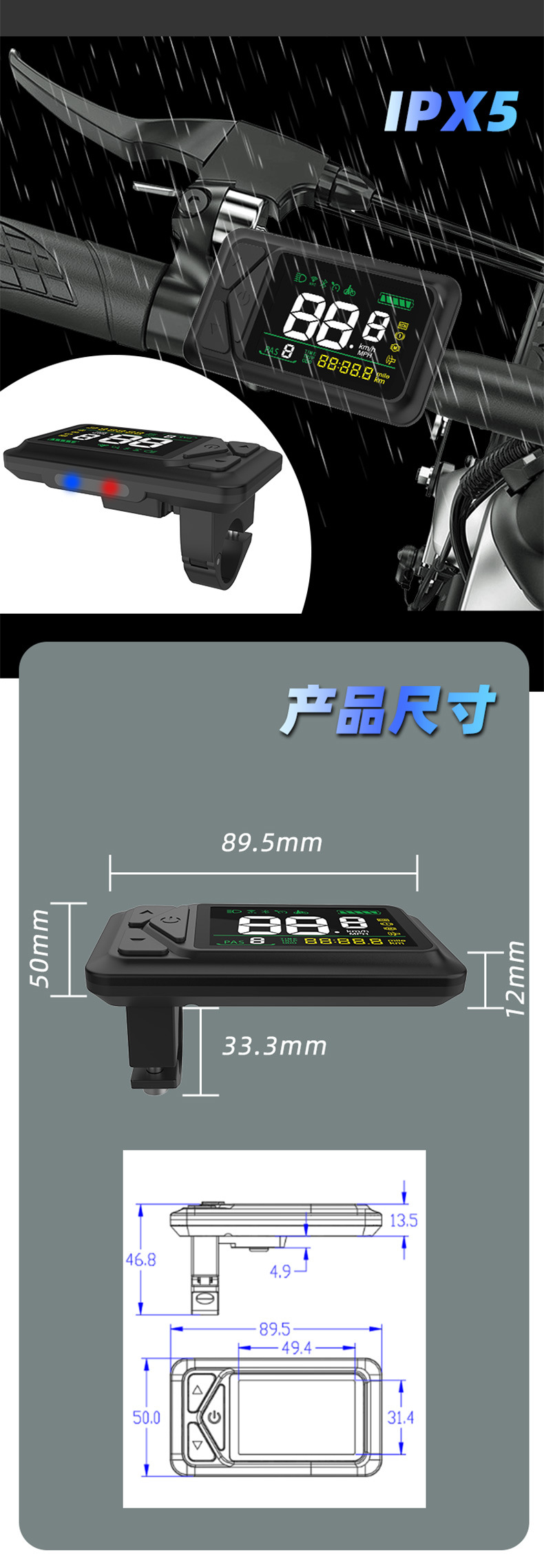 Водонепроницаемый умный LCD дисплей для электрического транспортного средства, NFC сенсор, измерение скорости, одометр