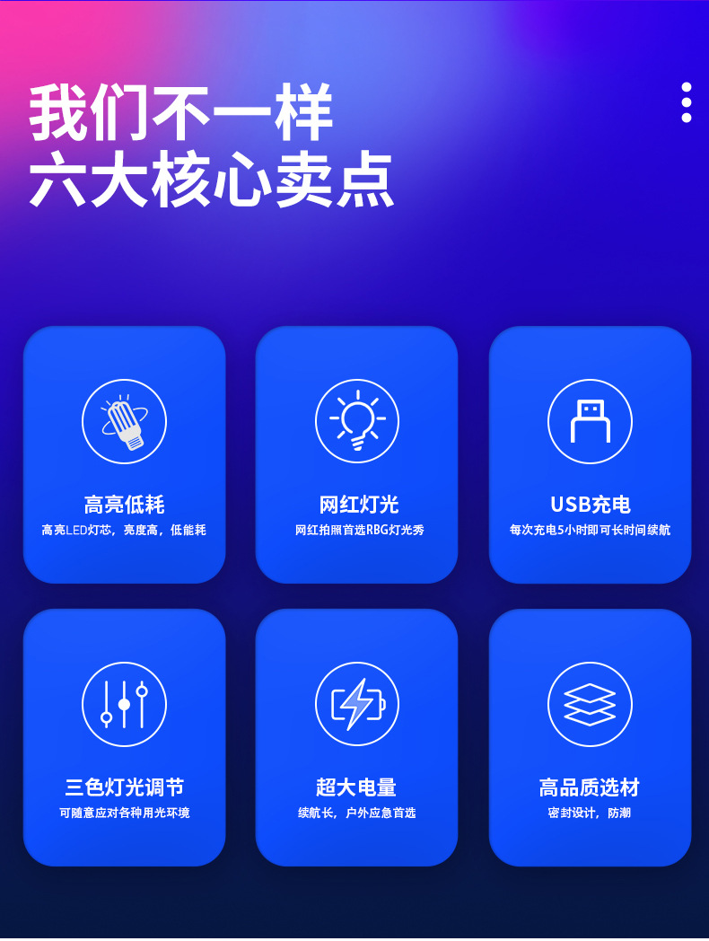 ![]() | A light three-color blue purple pink light | 30W 17CM | ¥7.0 / ≈ 85 ₽ | 0 | 5943294547945 | |