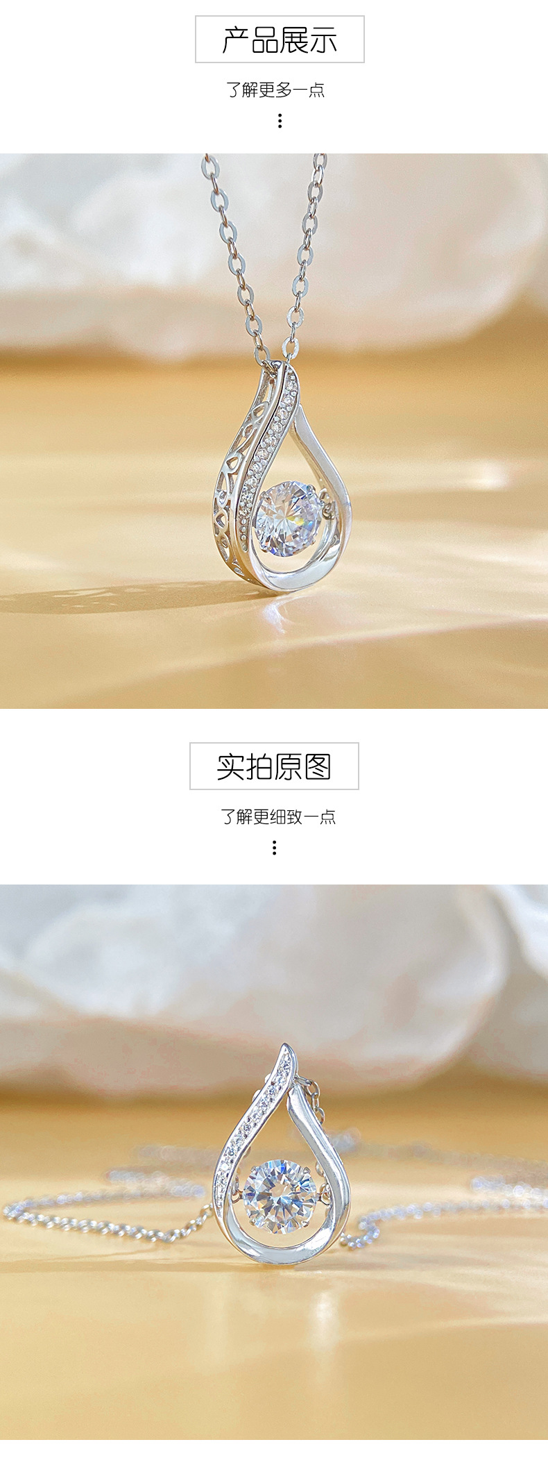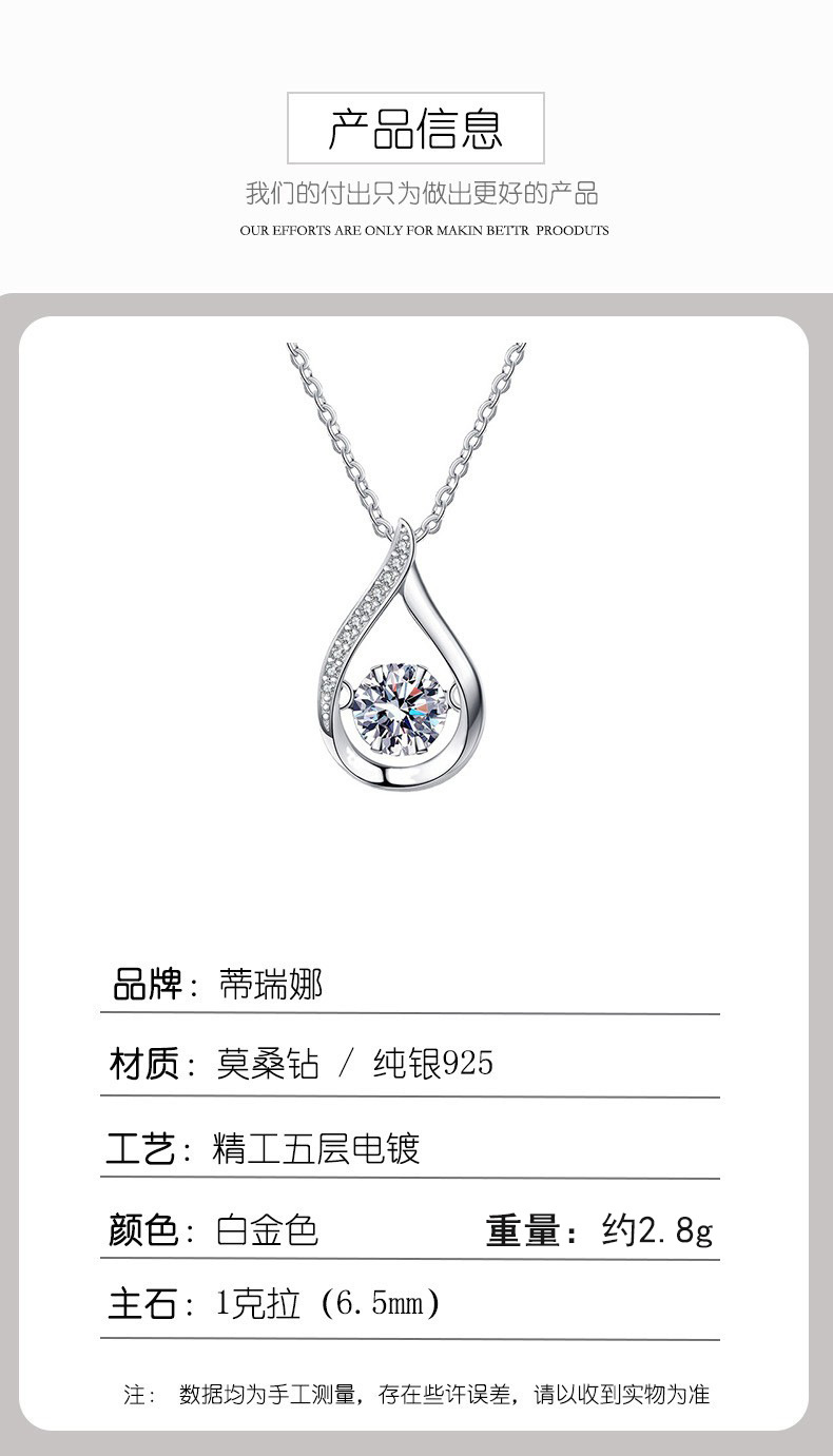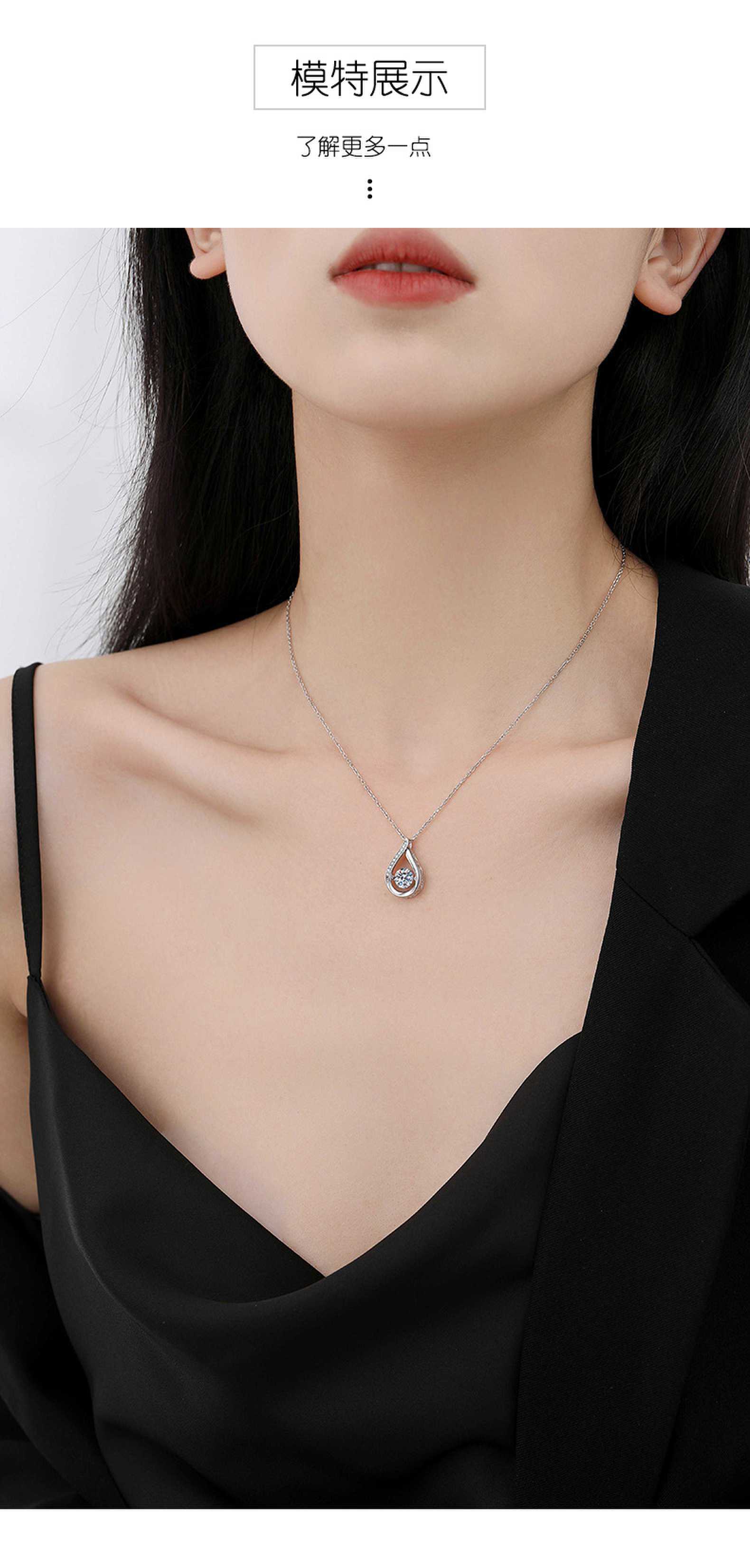 Подвеска из S925 стерлингового серебра Ожерелье из моиссанита для женщин, капля воды Легкий люкс Французский стиль, динамичный зрелый темперамент, высококачественная цепочка на ключицу