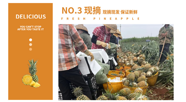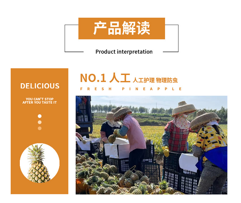 由于货源地南方天气较热,凤梨发货经过快递运输有磕碰,较熟的果肉可能会出现颜色变深,这个是正常现象,不是果肉坏掉,不在售后范围,请尽快食用。区分参考下图。规格里的个数仅做参考不作为售后依据。介意慎拍。