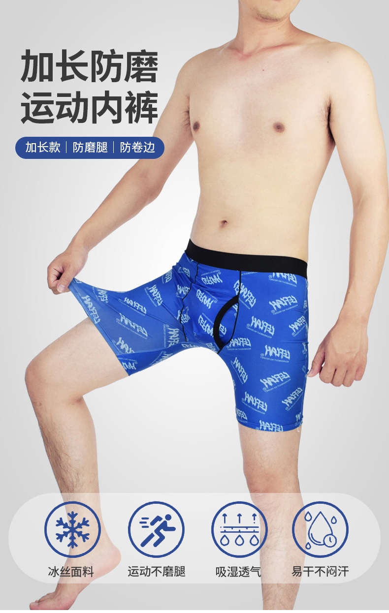 Мужские боксеры из ледяного шелка длинные антиабразивные леггинсы быстро сохнущие открытые высокоэластичные спортивные боксеры больших размеров