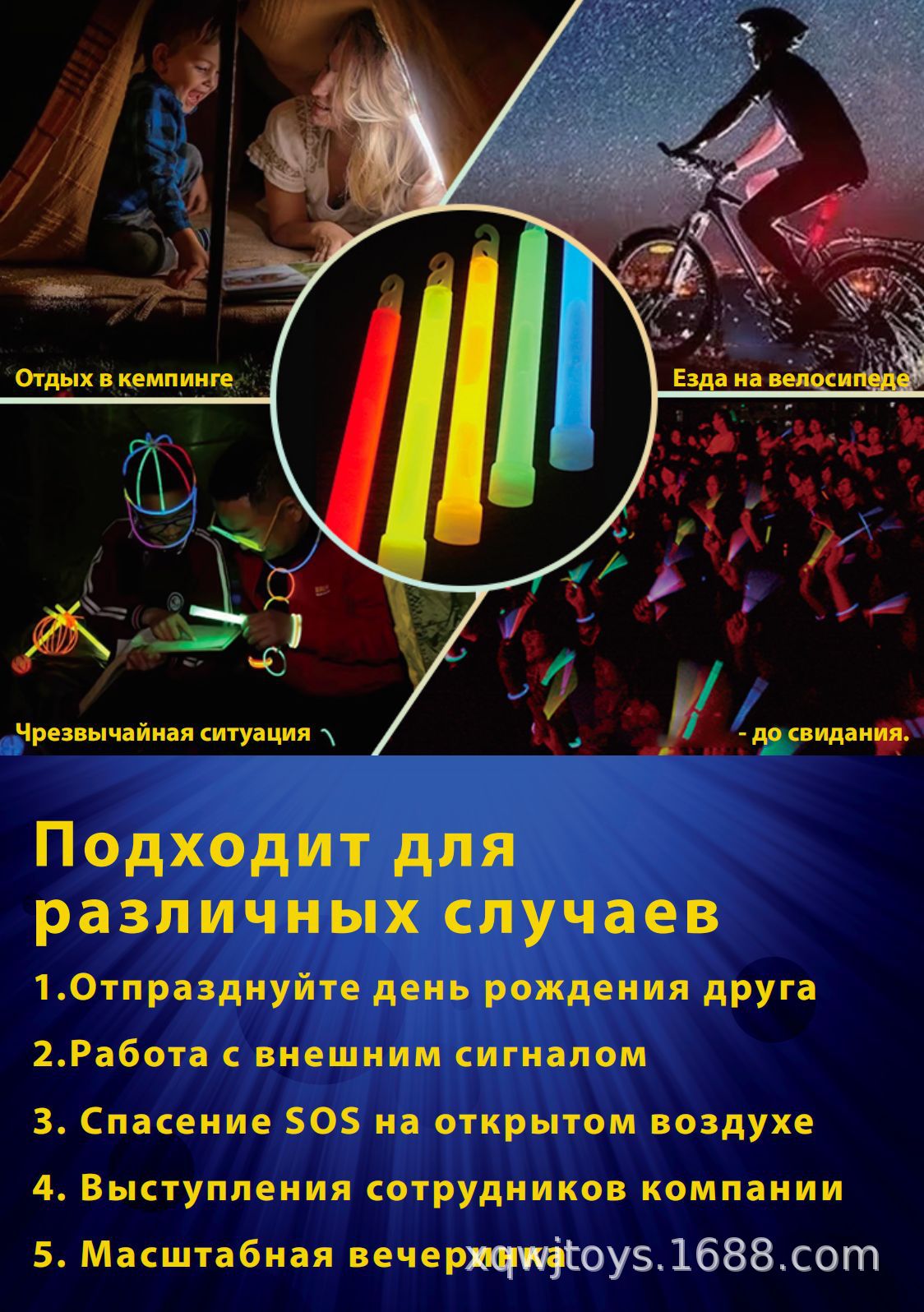 Популярная российская военная светящаяся флуоресцентная палка Стиль кемпинга Стиль кемпинга Экстренное освещение 6 дюймов Холодный источник света с крючком
