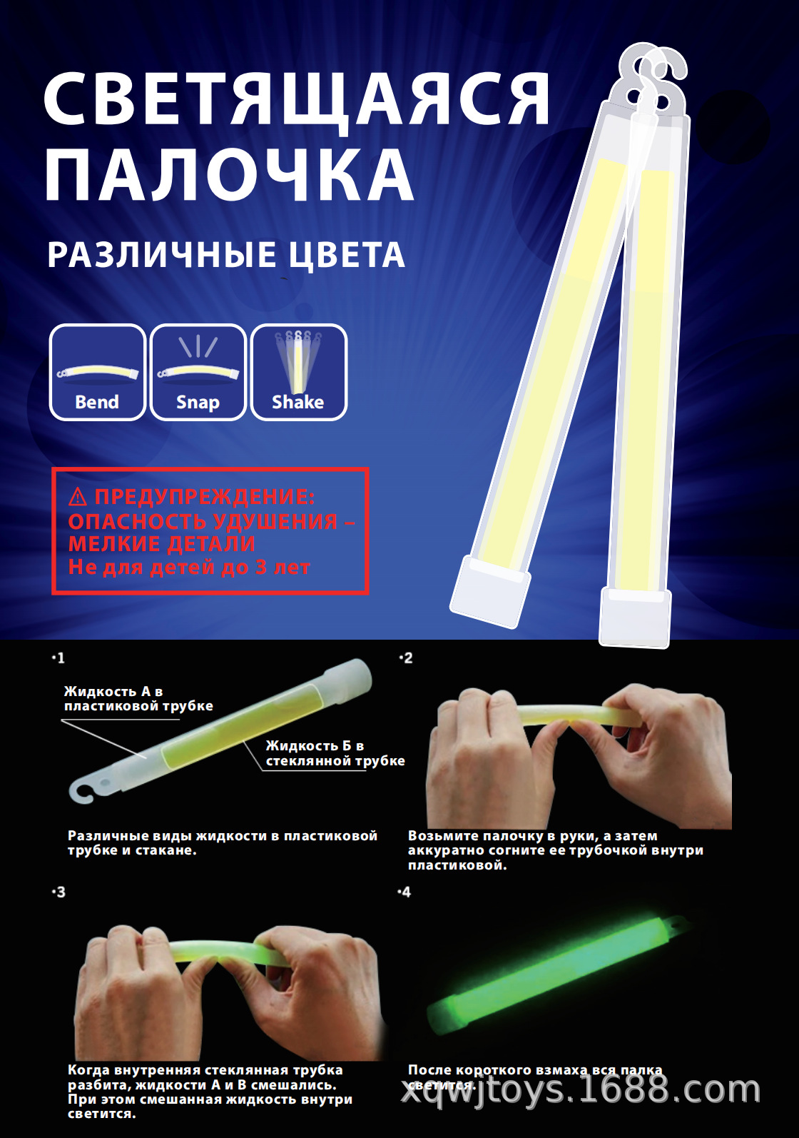 本产品为应急照明产品,适用于各种野营露营照明,探险照明,可放置在家中或急救包中备用,亦可作为发光礼品。请放置在避光阴凉地方储存。本产品为一次性发光产品,使用时拗断内部玻璃管,不是质量问题不予退货。本产品为冷光源,不用电,不发热,不易燃,防水,可以水下20米以内使用,。本产品采用化学反应原随温度变化发光时间和亮度有所改变。其它问题请咨询客服。谢谢光顾!