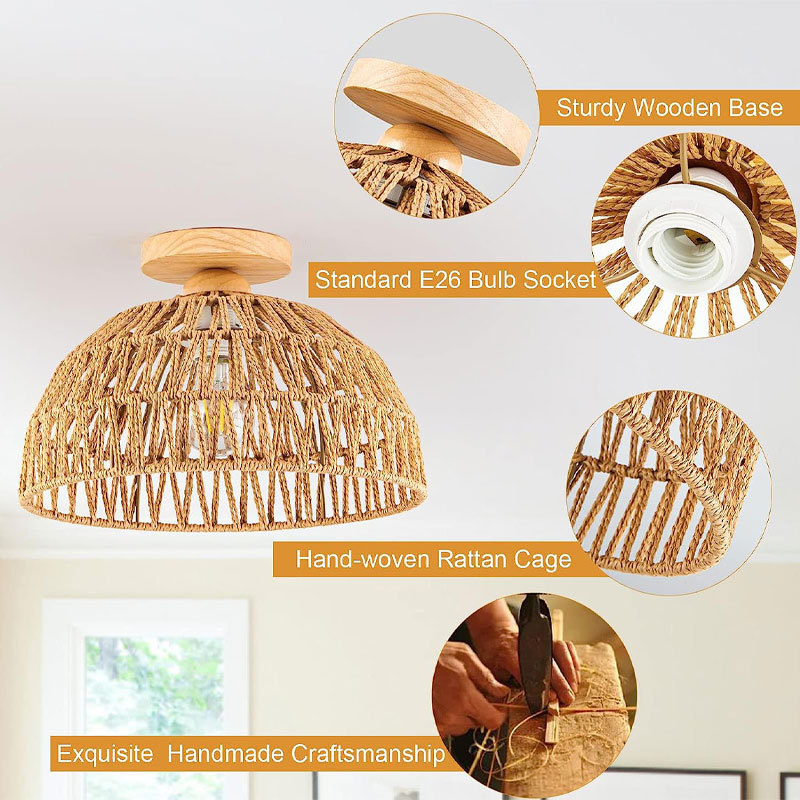 Американская деревенская ретро лампа для гостиной, столовой, учебы, коридора, деревянная основа, плетеная клетка