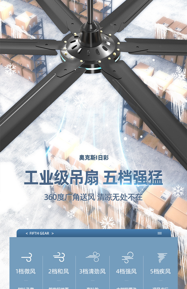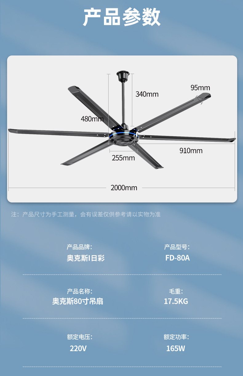 Потолочный вентилятор Oaks Chigo Sunshine 2м, большой 80 дюймов, мощный заводской промышленный вентилятор