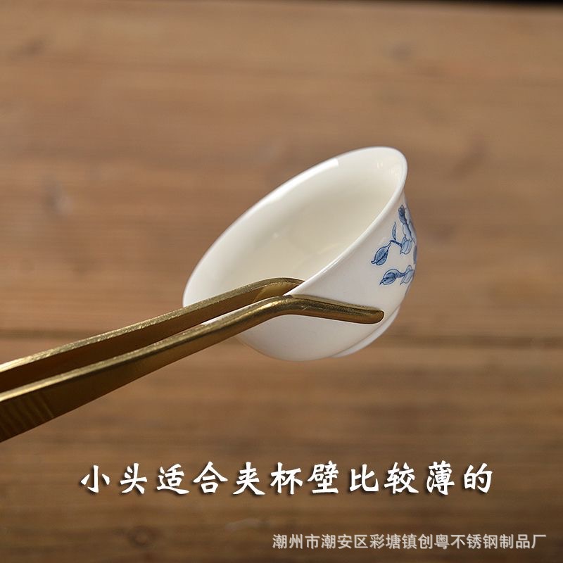 Зажим для чая из титаново-покрытой нержавеющей стали, зажим для мытья чашки, утолщенные пинцеты, оптовая продажа для производителей кунг-фу
