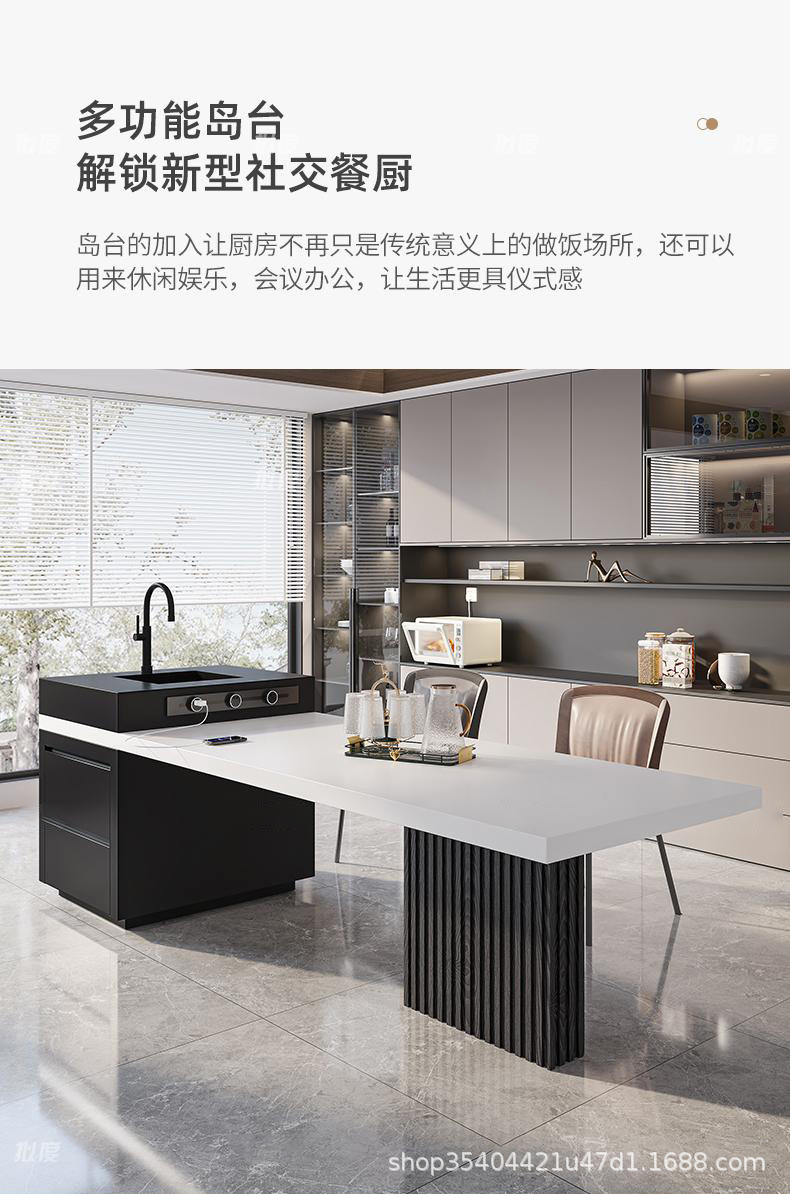 Современный минималистичный островной стол с интегрированной раскладной раковиной, многофункциональный барный стол с индукционной плитой