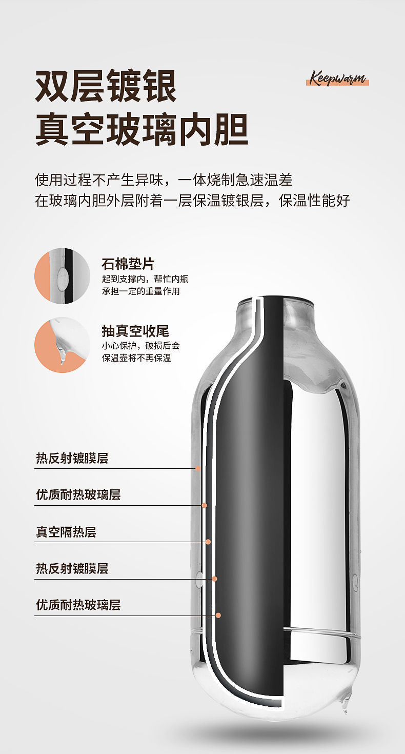 Термос объемом 3.2 литра, для дома, с стеклянной вставкой