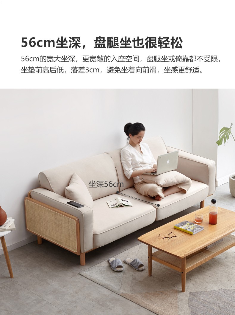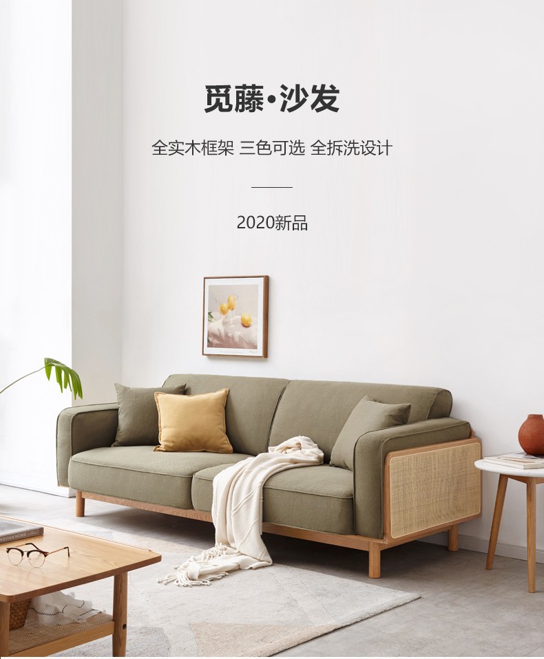 Набор ротанговых диванов 2025, японский стиль, ясень, трехместный, ткань, натуральное дерево, простой, маленькая квартира, гостиная, массивное дерево, трендовый